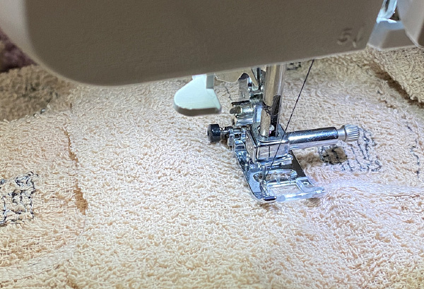 江口 導電糸は、普通の糸よりも硬く、また試作用に試しに買ってみた100均のタオルは思ったより薄く縫い付けるのに苦労しました。大きなタオル全面で触れられた位置を検出するために、今回は48箇所にセンサー面が露出するように導電糸を縫い付けたのですが、作業の間に我が家のミシンを壊してしまいました(笑)。根気よく手縫いで頑張りましたが範囲が広すぎるため早々に諦め、コロナ禍で売り切れが続出する中、二代目のミシンを何とか手に入れて作業を継続することで、申し込みに間に合わせることができました。