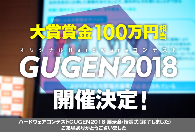 2013 年からはじまりました「GUGEN コンテスト」も今年で6回目、前身となる「電子工作コンテスト」から数えて10回目となり、実用性や商品性の高いアイデアを表彰する Makers の登竜門となっております。