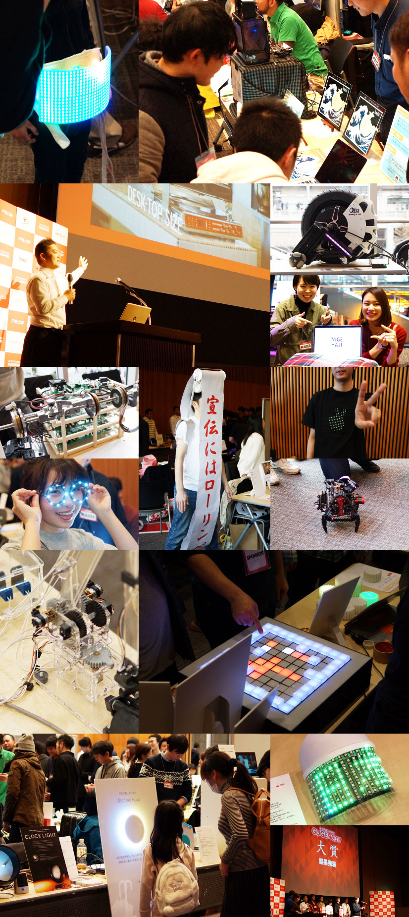 秋葉原コンベンションホールにて開催となりました「ハードウェアコンテスト GUGEN2017」。会場では一次審査通過作品の内、69 の作品が展示されました。