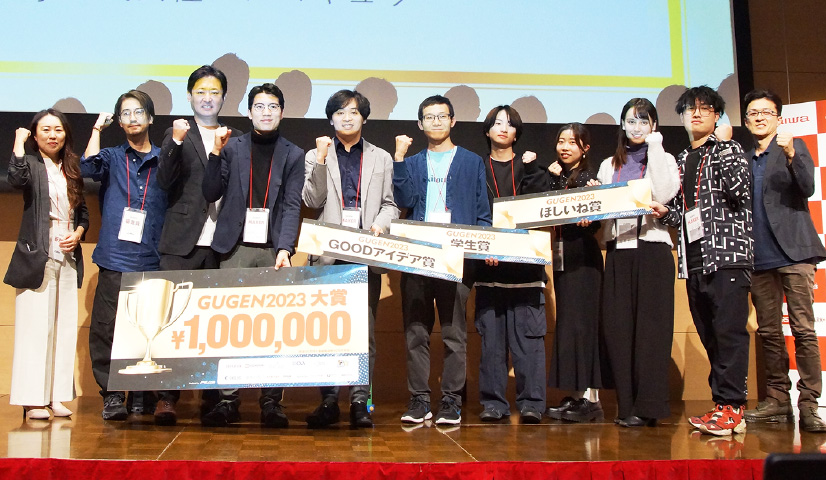 11/28(火)開催されたGUGEN2023展示会・授賞式にて大賞ノミネート作品5チームのプレゼンテーションが行われ、ものづくりの最先端を知る3名の審査員により、GUGENの審査基準に則って総合点を算出した上で各賞を発表しました。