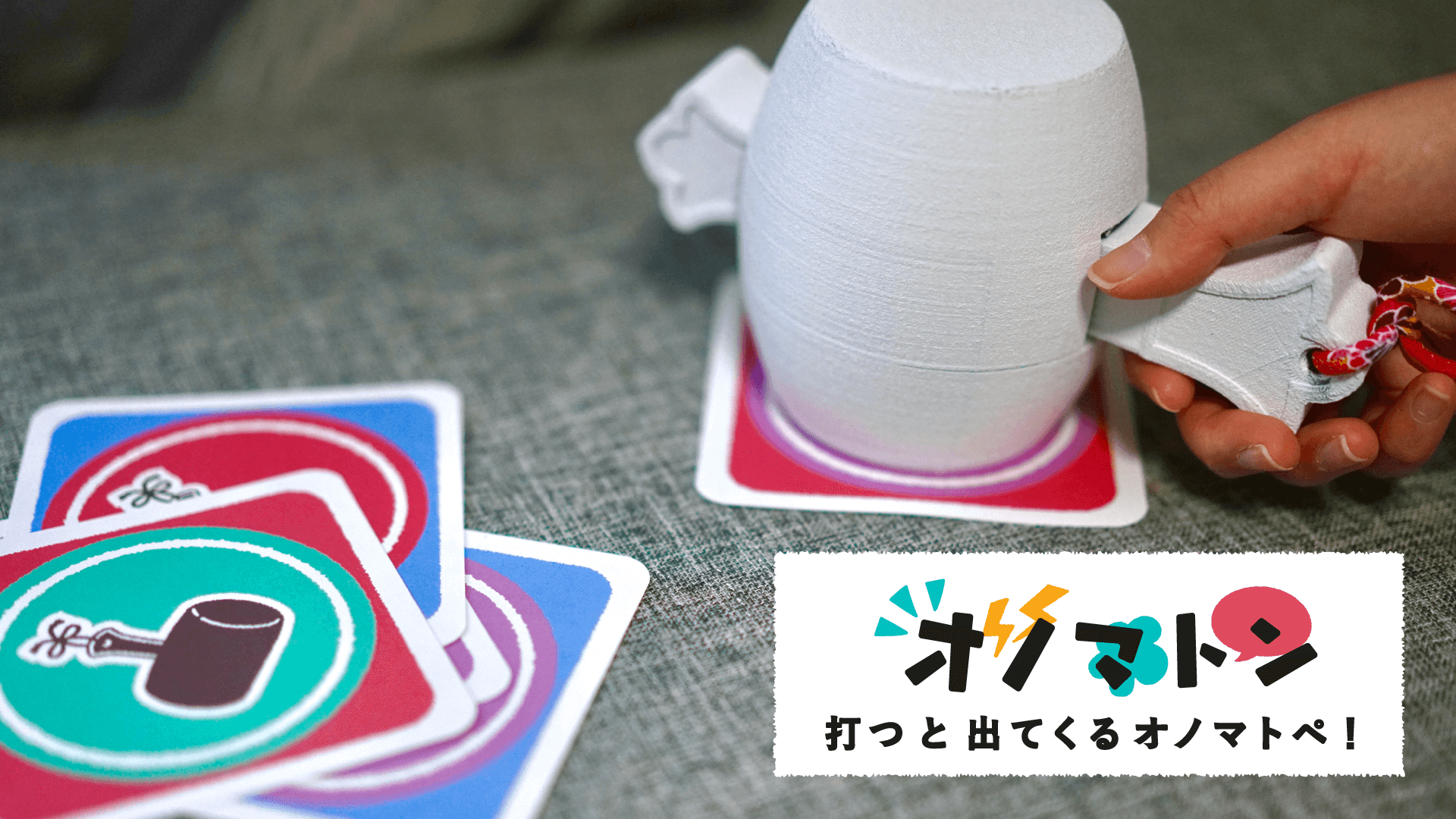 「オノマトン!」はそんな\\"オノマトペ\\" を 想像して、探して、遊ぶ、小槌型の知育玩具です。