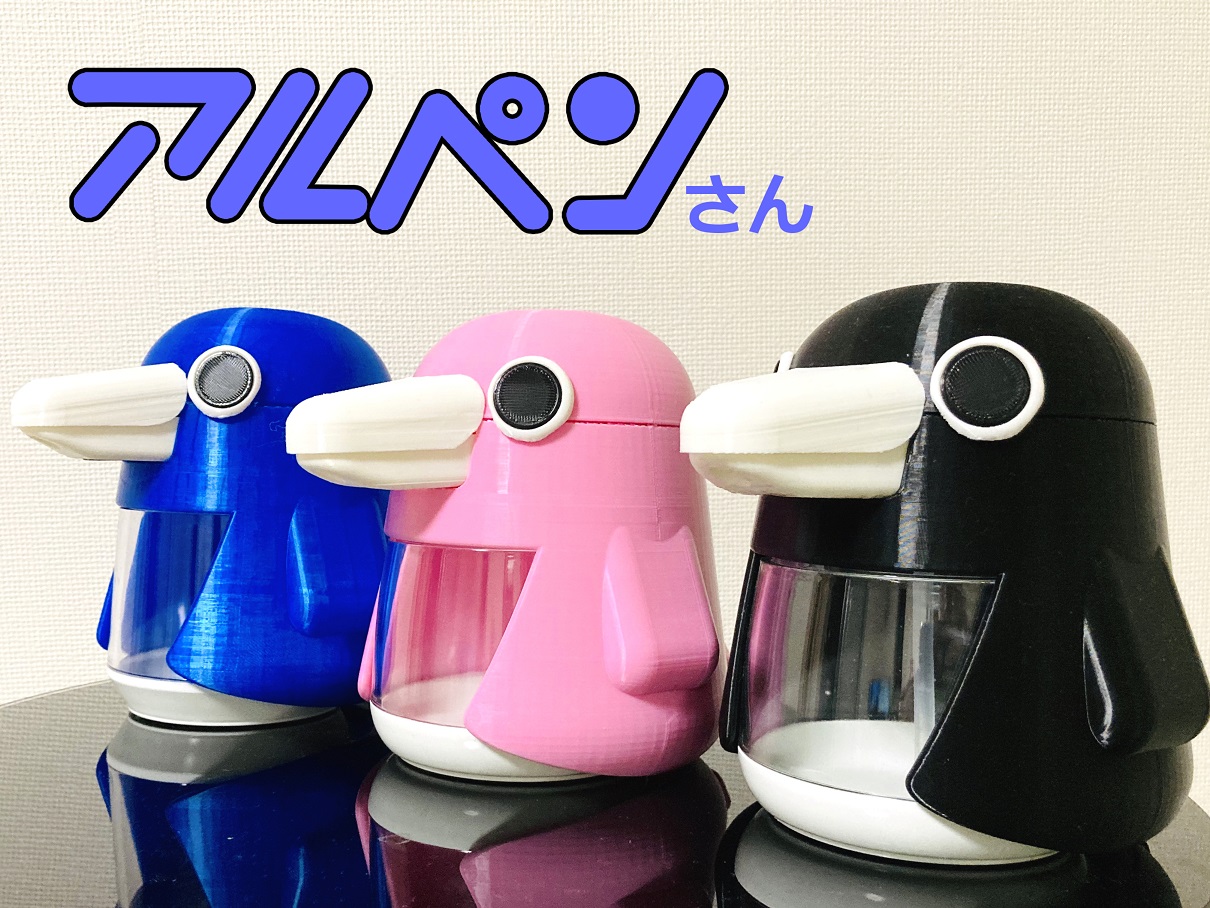 ペンギン型の自動アルコールディスペンサー。 手をかざすと口からアルコールが出ます。