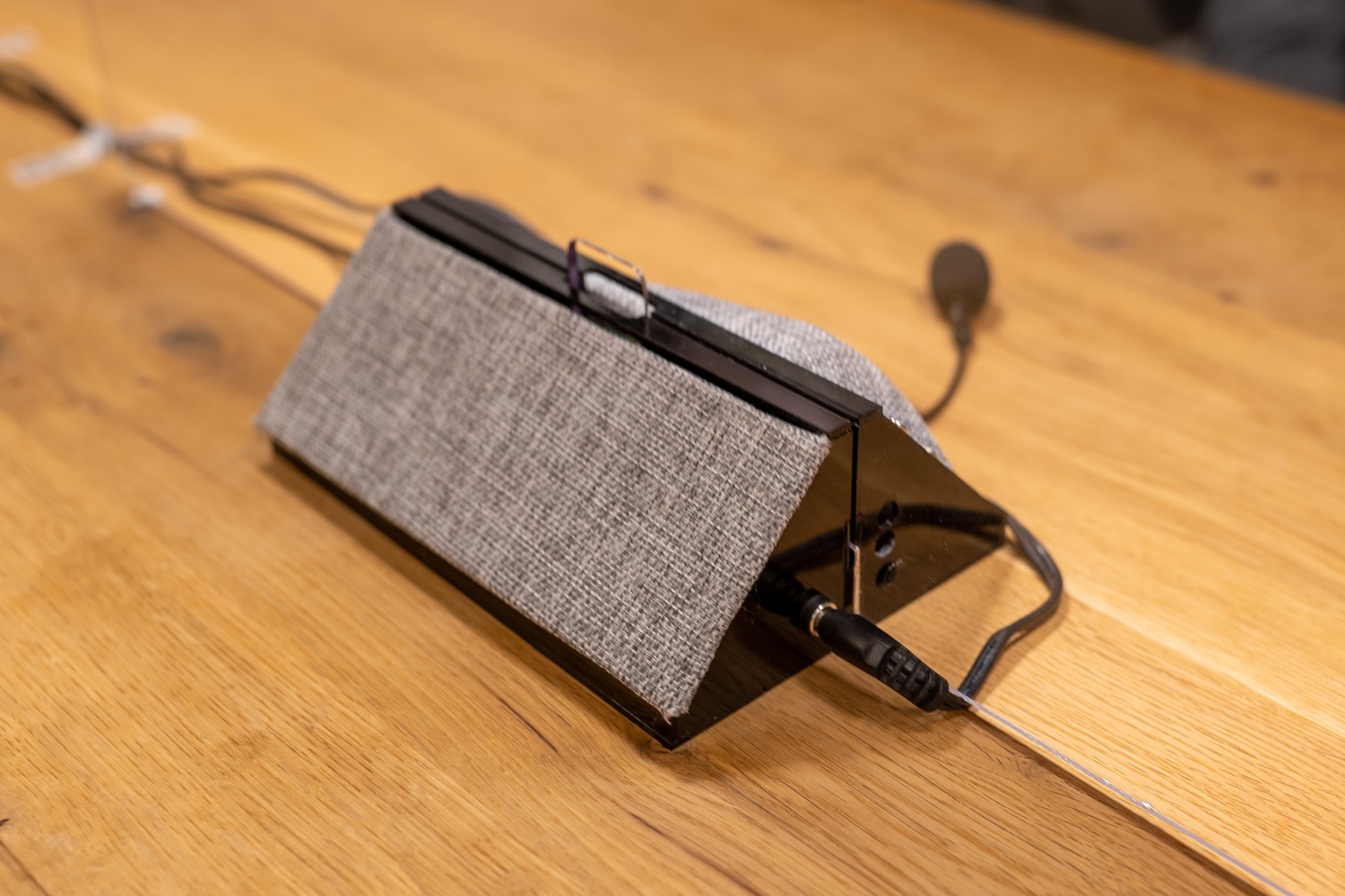 パーティションに向かって話しかけると、パーティション越しに拡声された声が届きます。