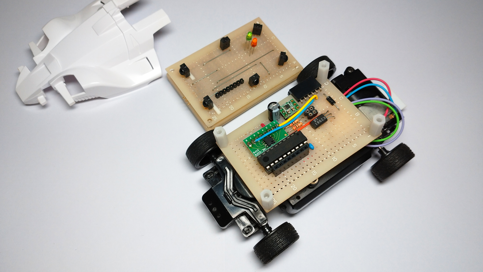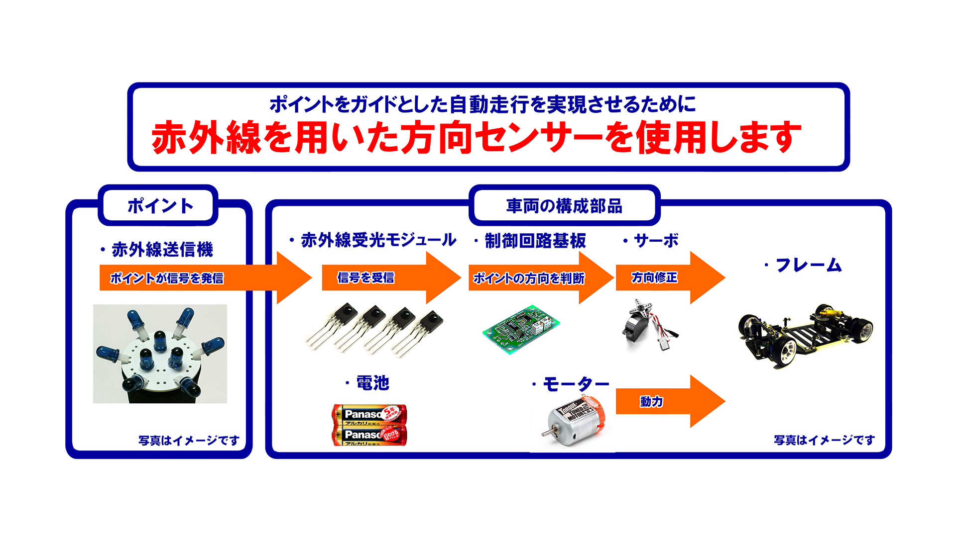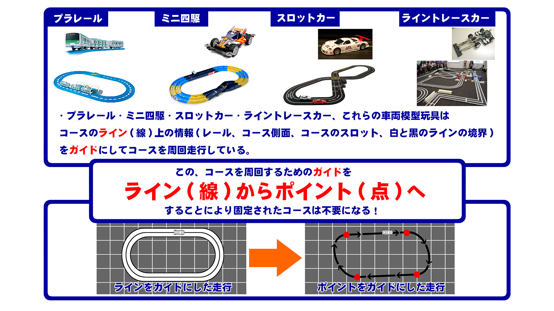 赤外線誘導方式の自動運転システムでより多くの子どもたちがミニ四駆のような製品で遊び 科学 技術 工学 物理などに興味を持ち様々な経験を得ることを願います。