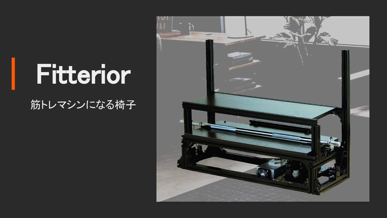 Fitteriorは筋トレマシンになる椅子です。普段は椅子として使えて、筋トレしたいときは筋トレマシンに変形できます。これにより、忙しい人やジムが遠い人でも、自宅でジムレベルの筋トレをできます。