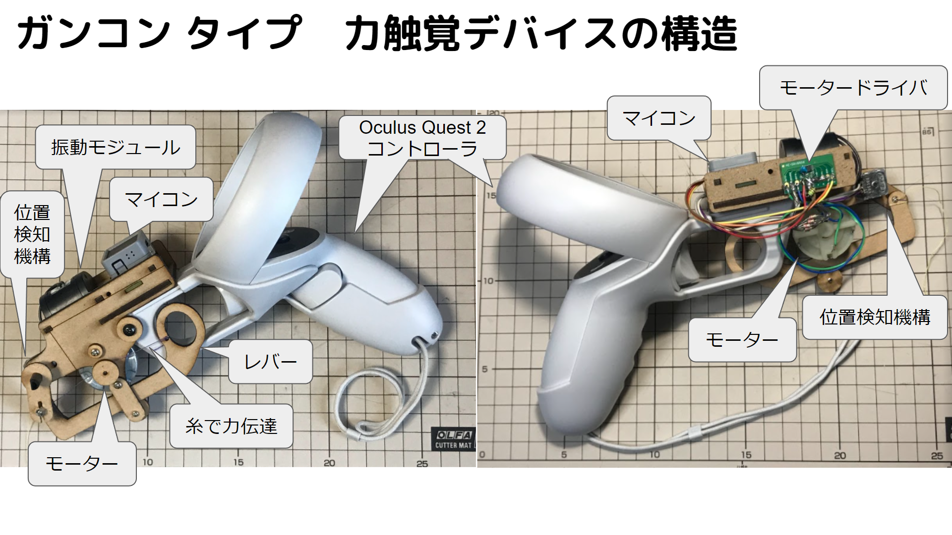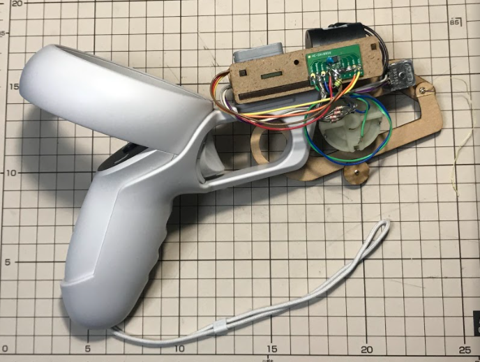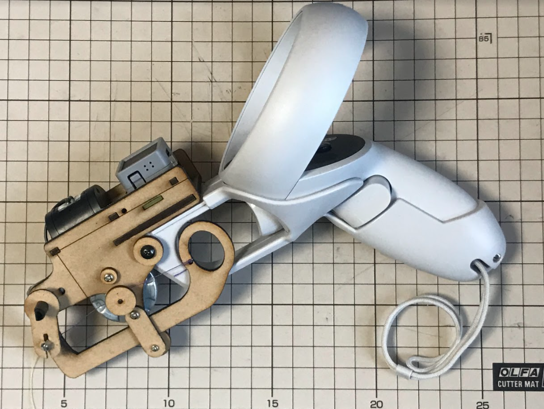VR機器のコントローラにアドオンできる普及型力触覚デバイスです。