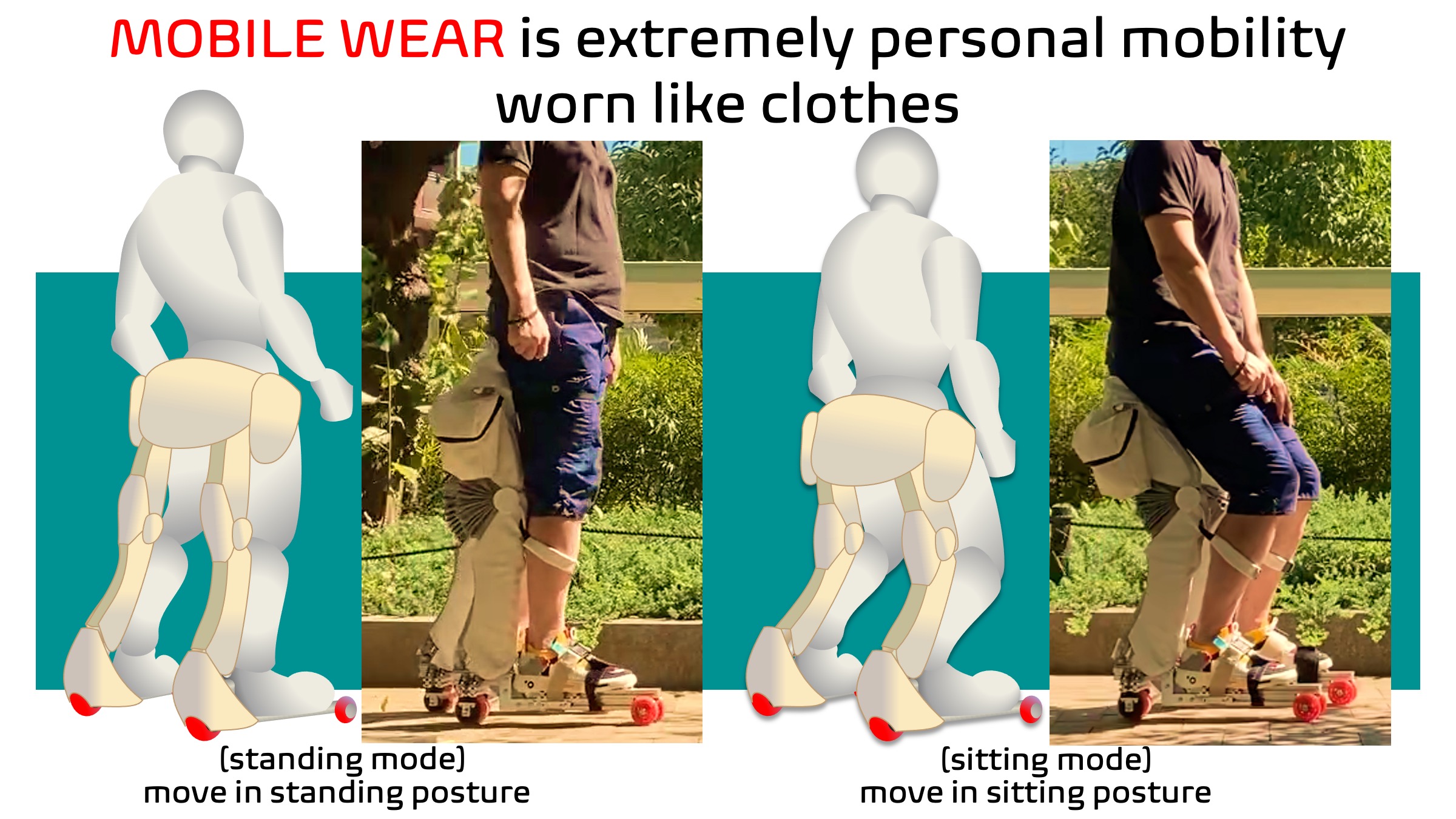 衣服の様に着用し、立ち姿勢(standing mode)および座り姿勢(sitting mode)で移動することができます。