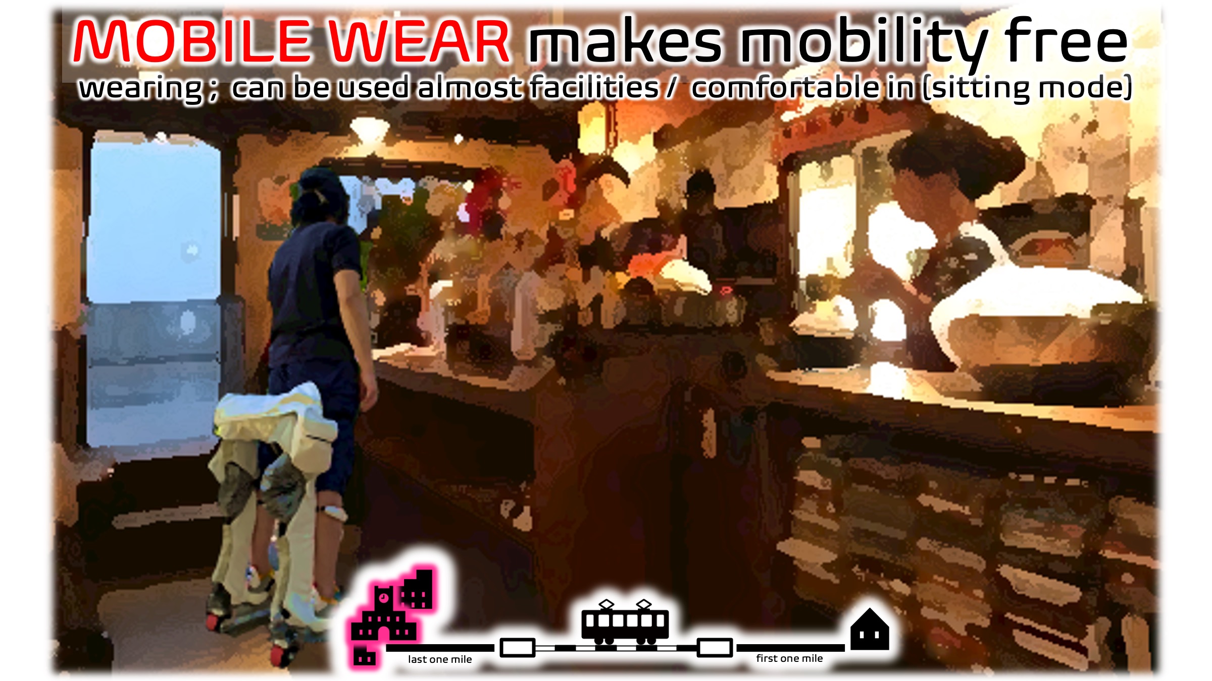 コンパクトなので家の中の保管場所にも困らず、衣服のように身につけたまま公共交通機関や施設を利用できるため、駐車場の確保や煩わしい手荷物としての持ち込みを心配することなく、ファースト/ラストワンマイルをつなぐ交通機関として用いることでシームレスで快適な移動が可能になります。