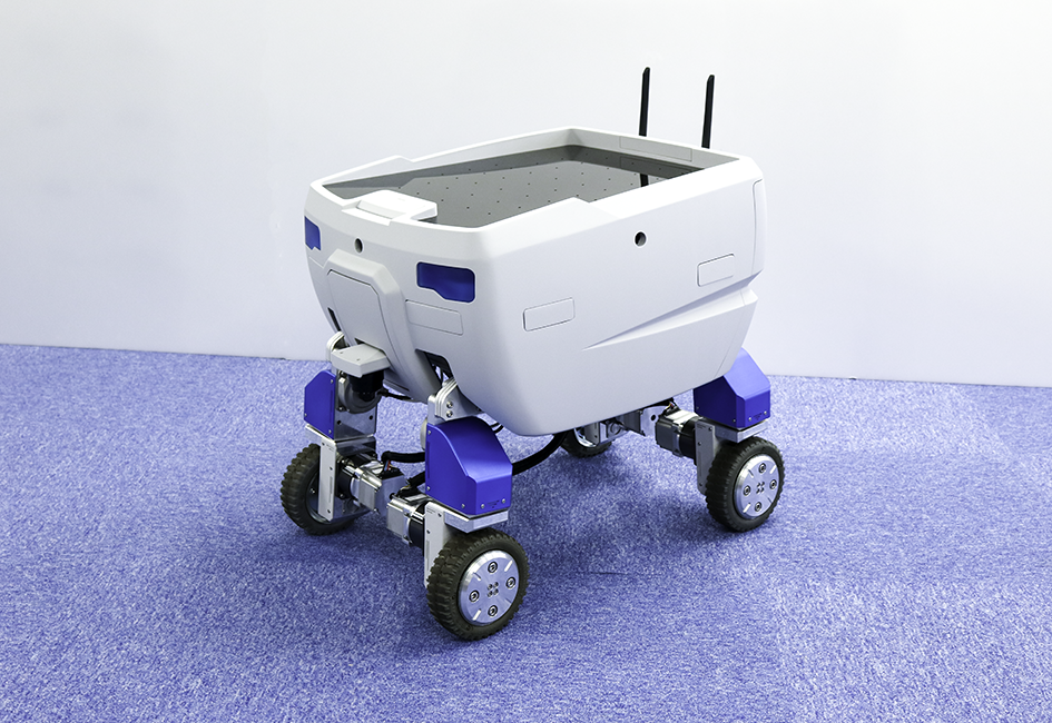 Mighty-D3は日本の月面探査ロボットの技術を応用して設計しているため、高さ15cm以上の段差を乗越え、凹凸がある路面を屋外・屋内問わず走行することができます。