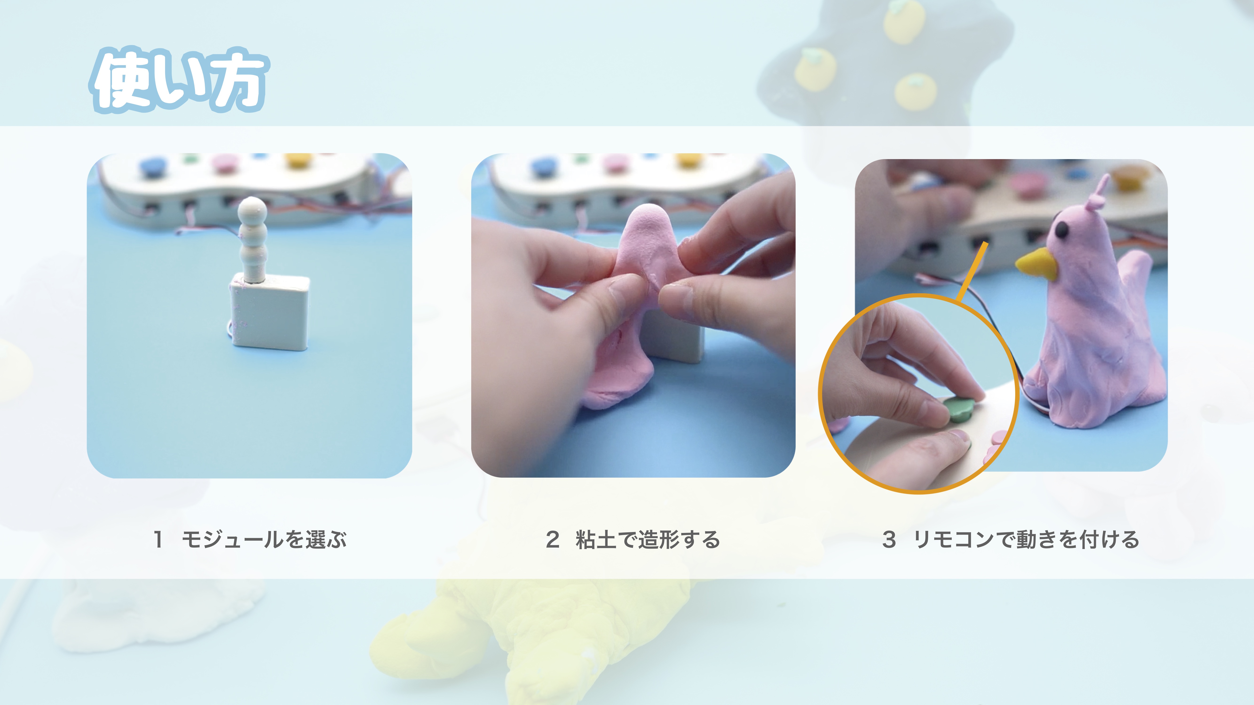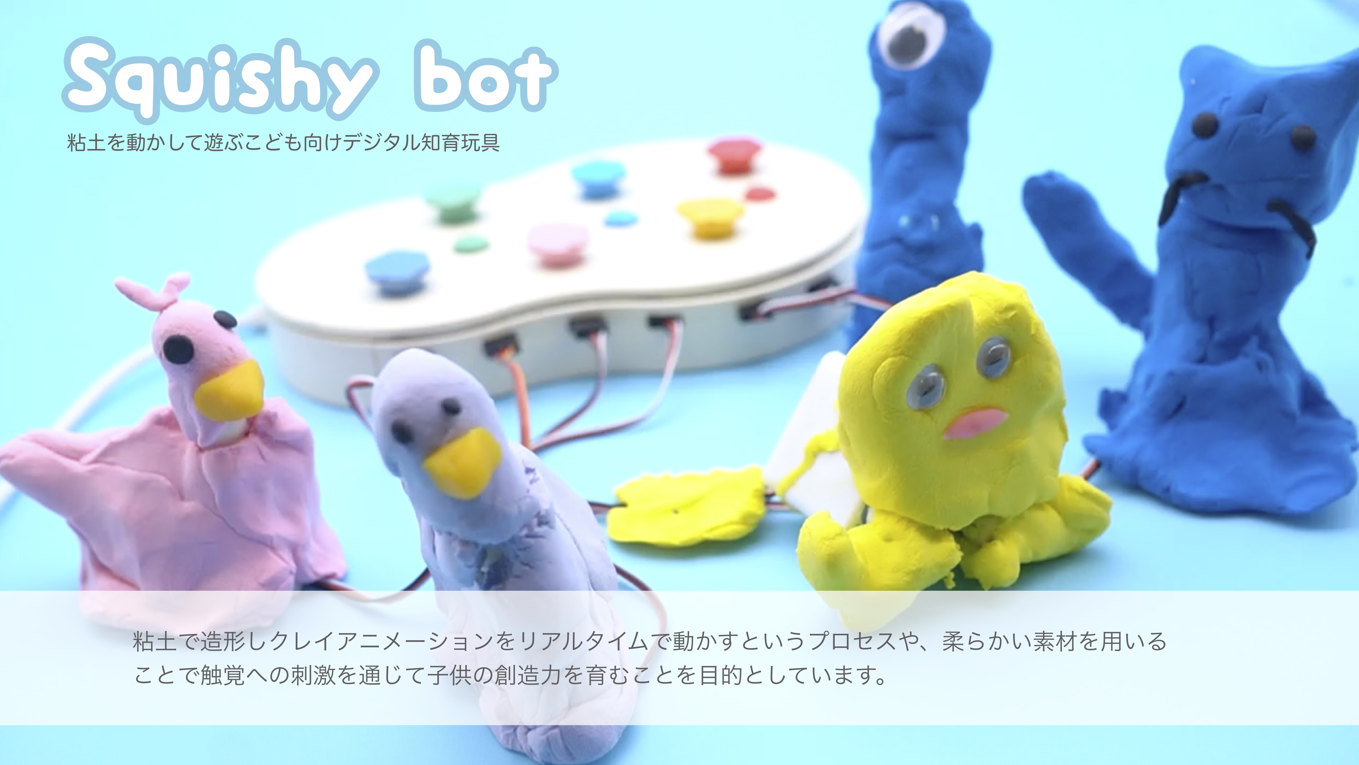 「Squishy bot」は粘土を動かして遊ぶことができる子ども向けデジタル知育玩具です。近年、プログラミングトイやロボットツールをはじめとする様々なデジタル知育玩具が発表されています。その多くはプラスチック製などのブロックやパーツから構成されています。