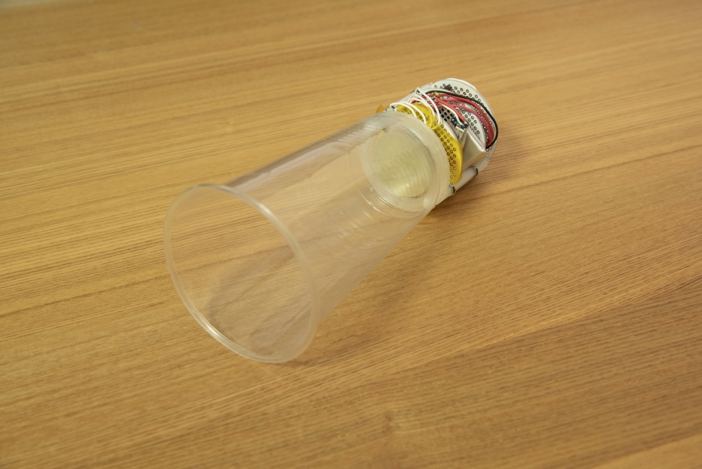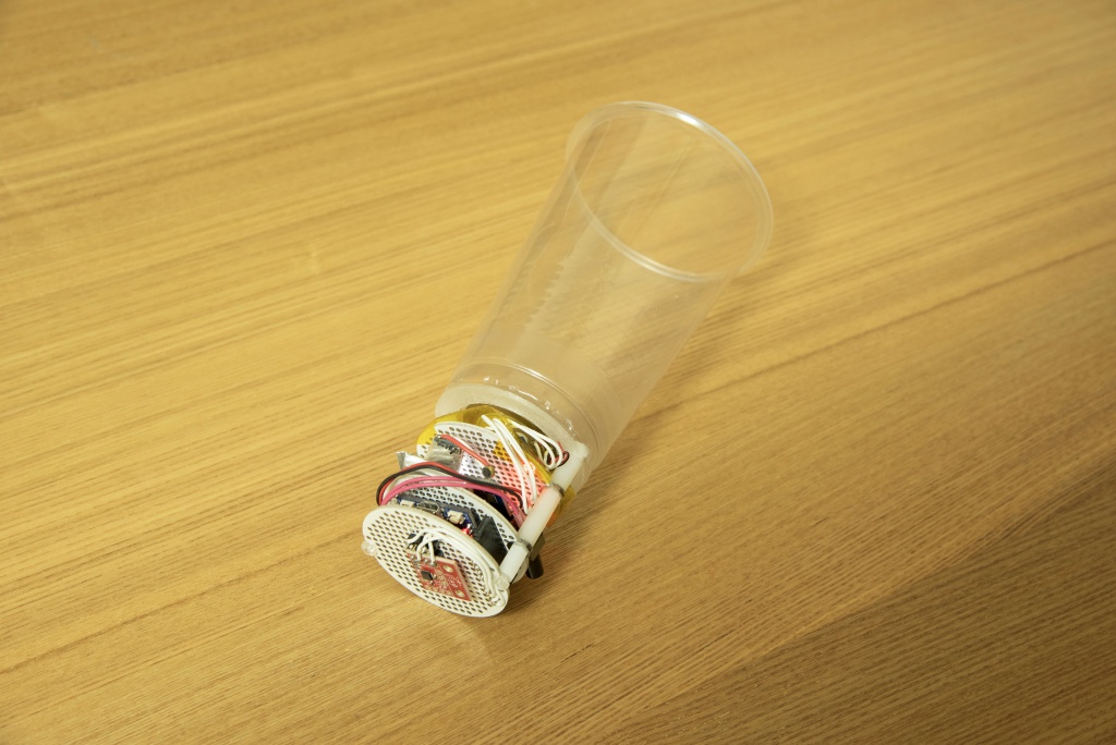 見えない糸は実際には存在しないため、GPSや加速度、地磁気センサを使いコップの位置や方位、姿勢を計算し相手と直線に結ばれたときに会話できるようにしています。音声のやり取りは既存のサービスを利用しています。