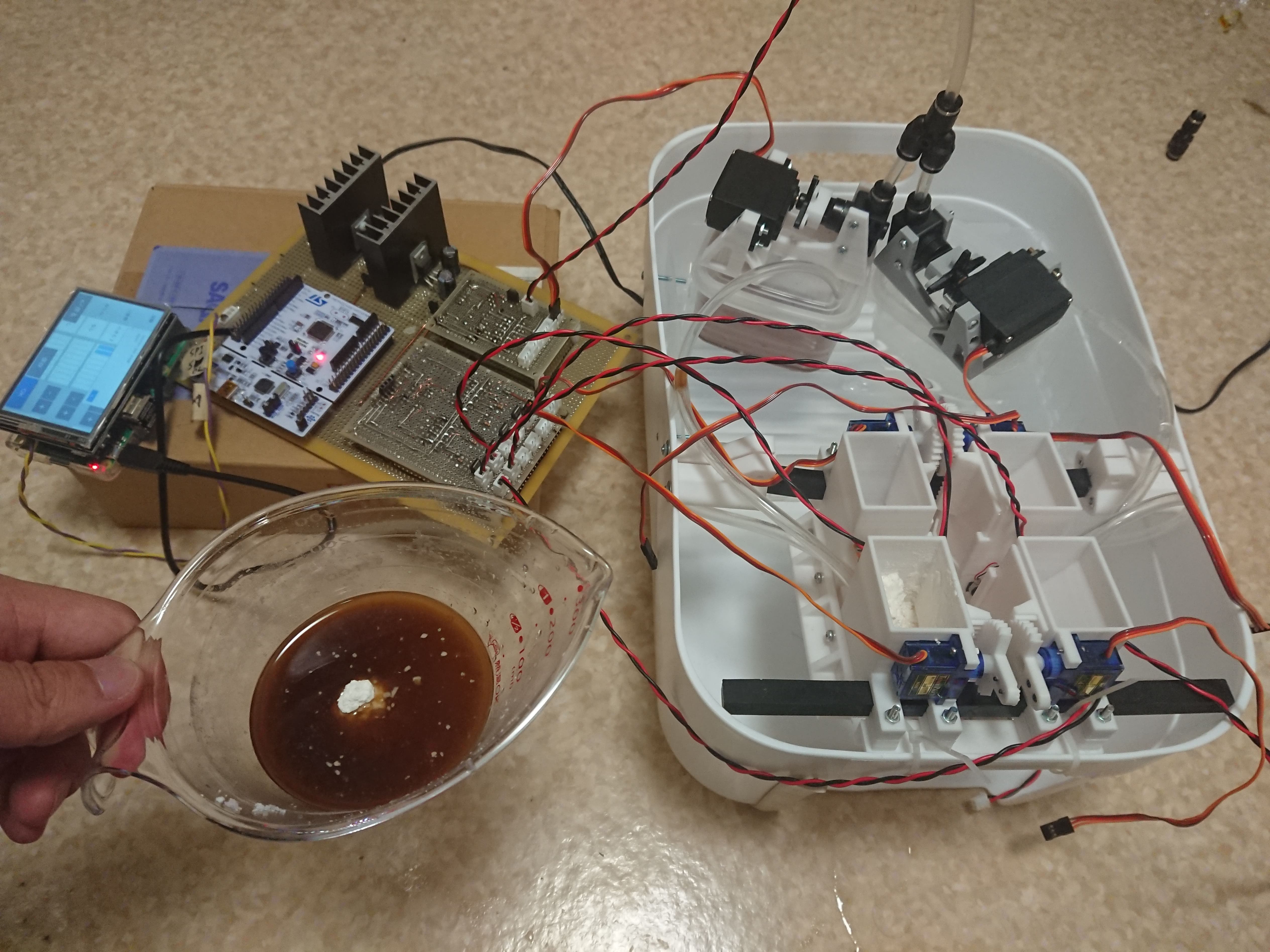 装置は入力するタッチパネルと、4つの粉用機構、2つの液体用機構から構成されます。