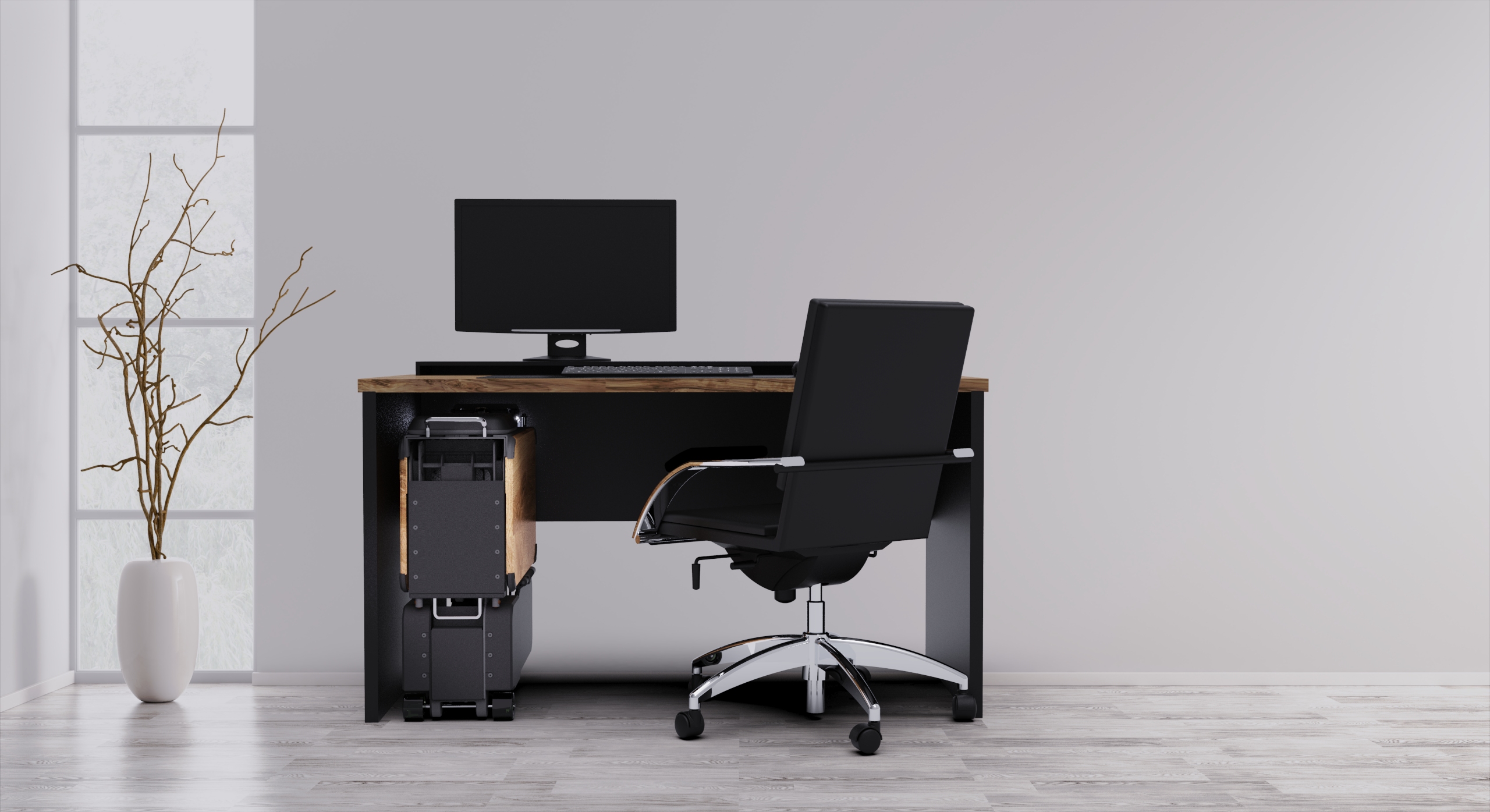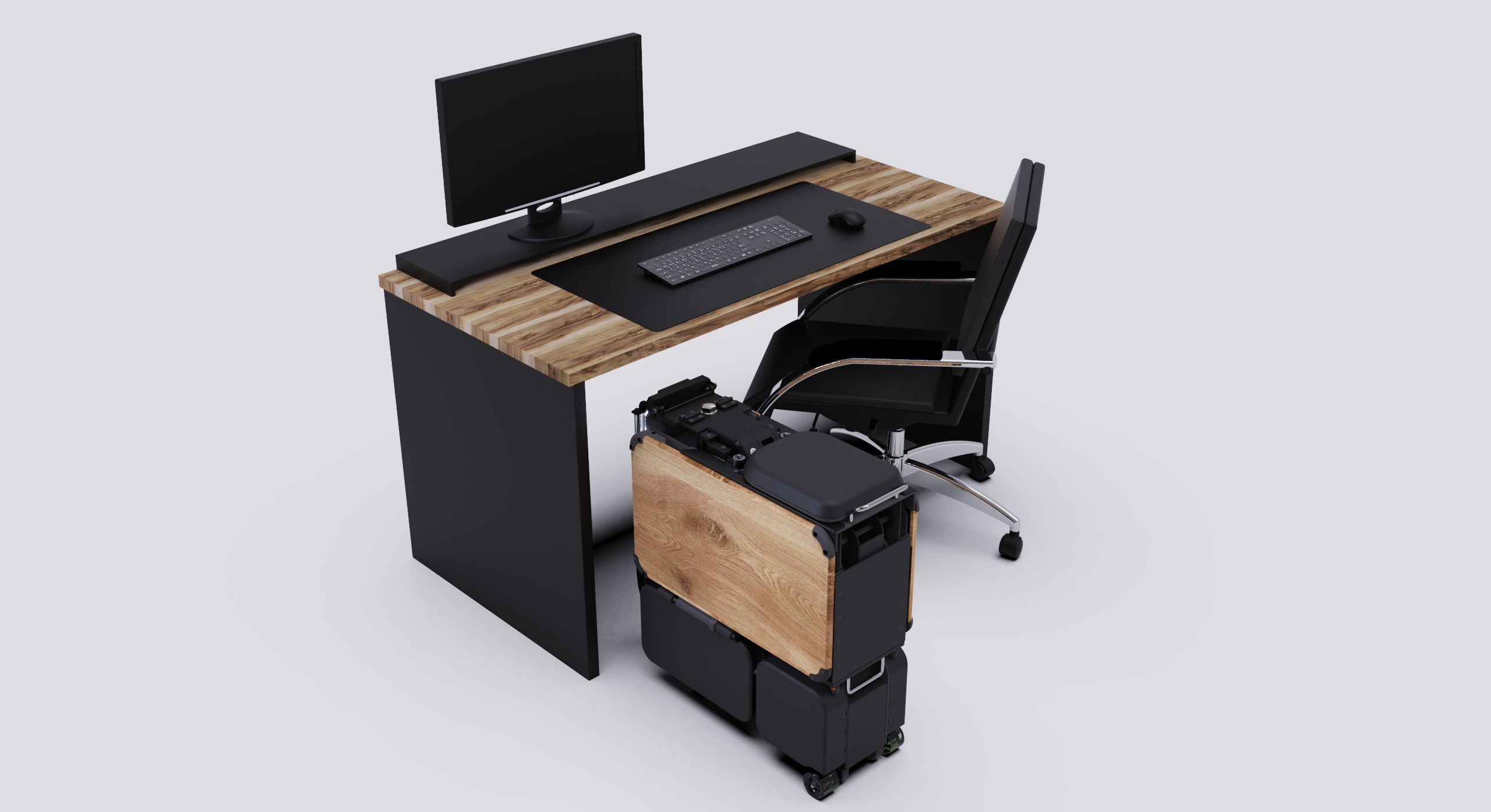 デスク下の小さな駐車場から