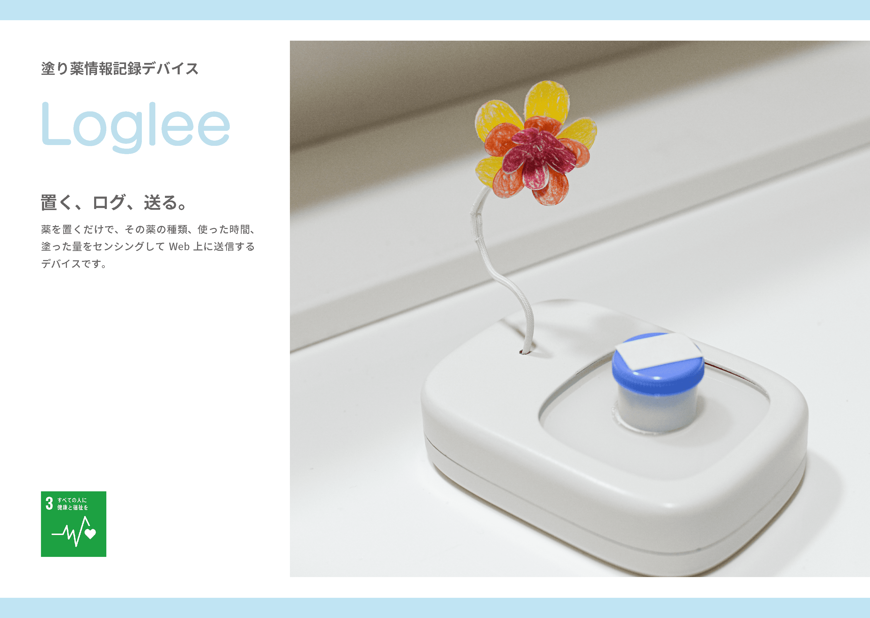 「Loglee」は、塗り薬を使った時の情報をセンシングするデバイスです。