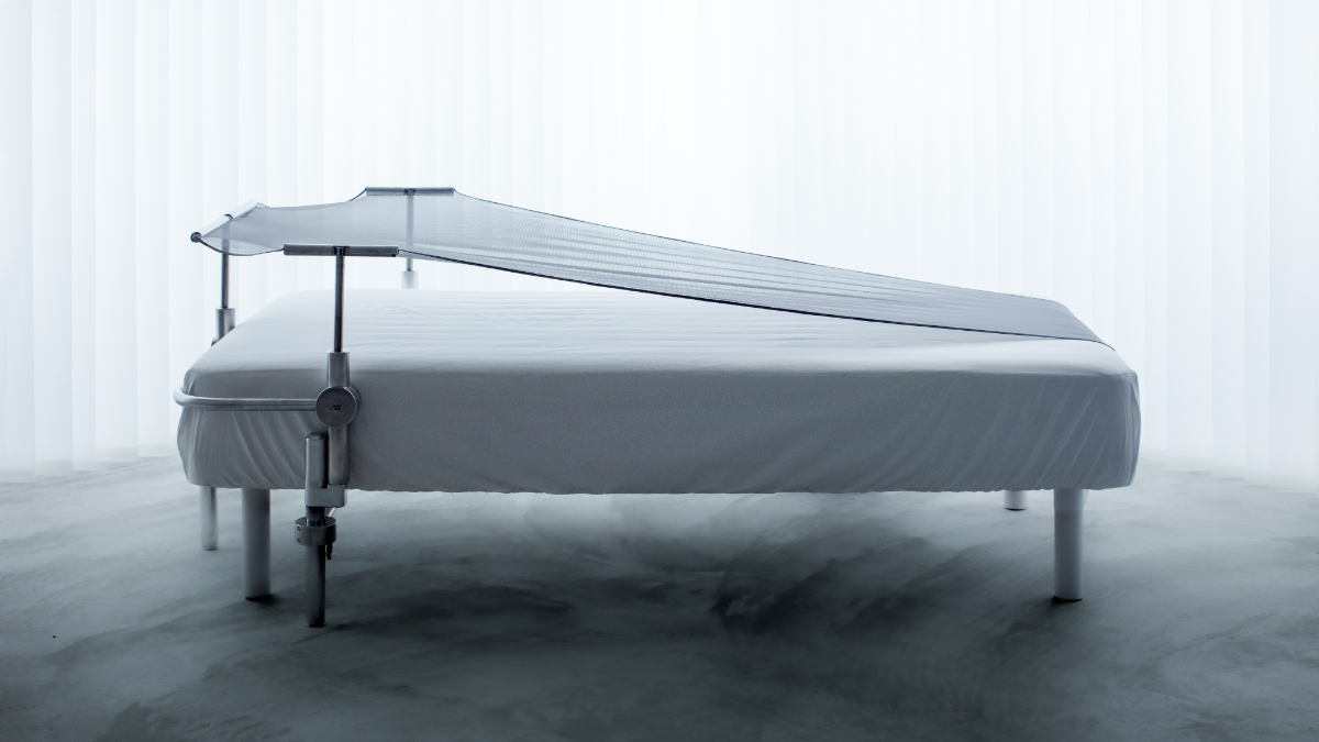 3本の電動シリンダに、ハンモックのように布をかけることで生地表面の形状を操作し、誰にでもフィットする枕を作り出す。
