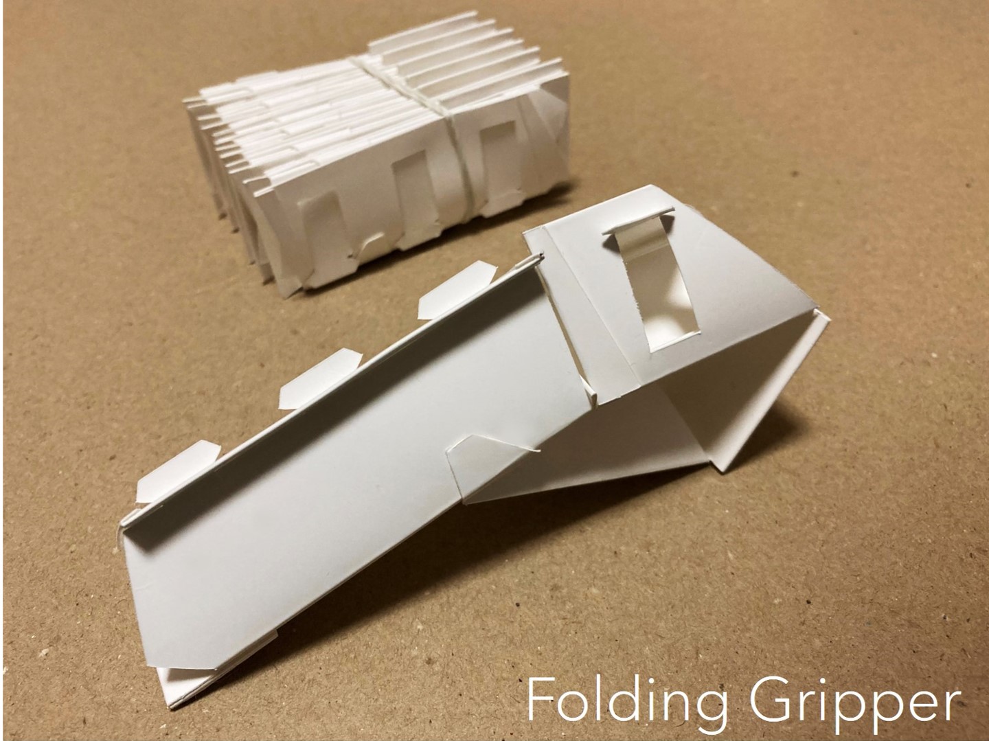 Folding Gripperは使い捨て可能な折りたたみ式指機構を持つロボットハンドです。