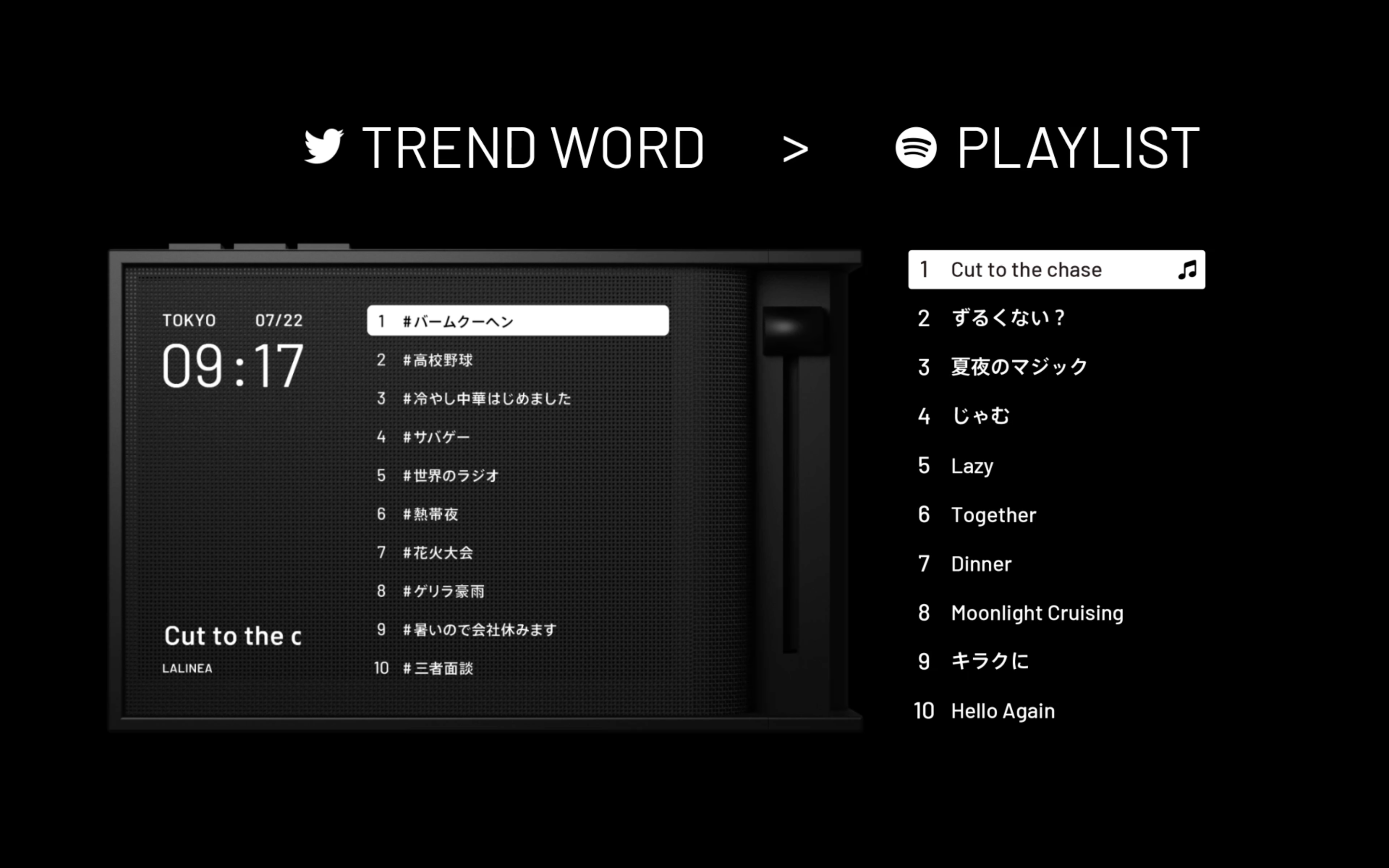 Twitterのトレンドワードから、いま、その瞬間にぴったりなSpotifyプレイリストを自動生成。
