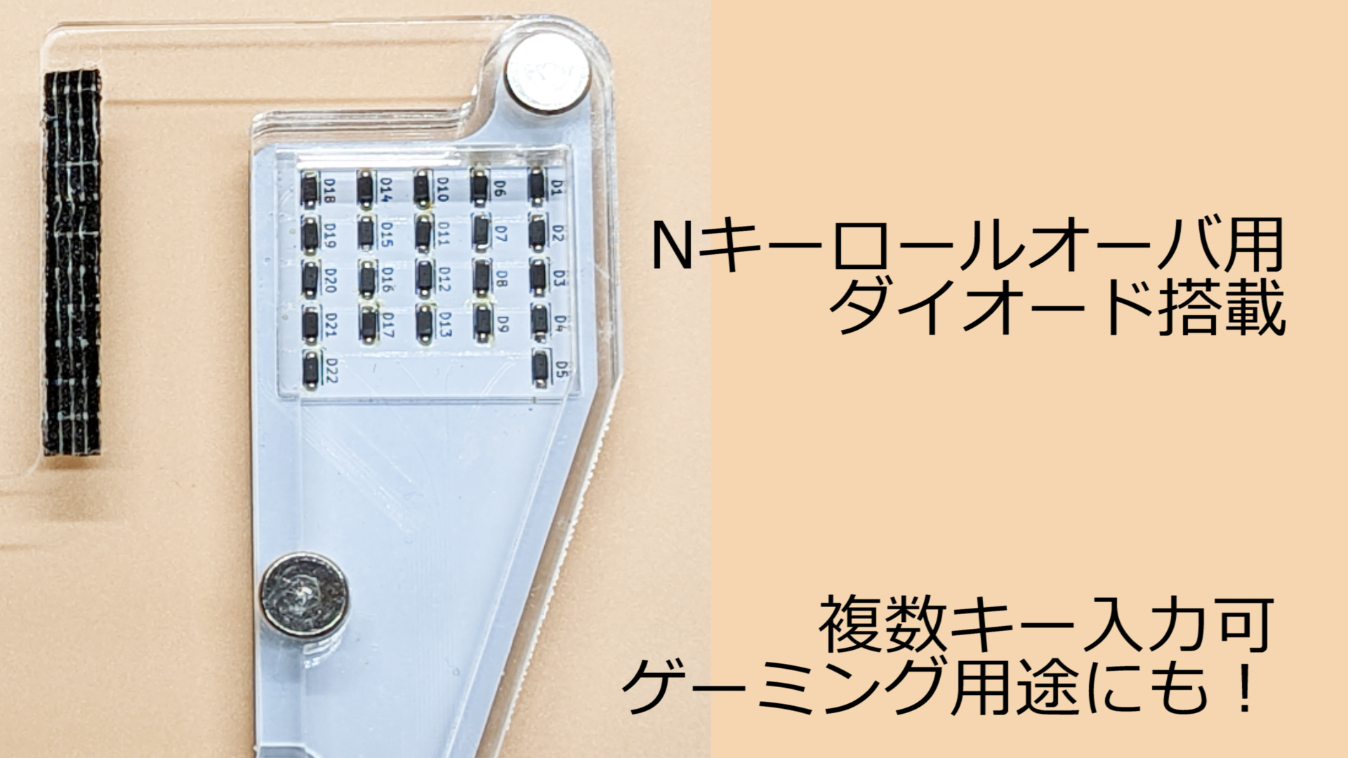更に各キーにダイオードを搭載しているためNキーロールオーバも実現。ゲーミング用途での使用にも適しています。(Nキーロールオーバとは、複数のキーを同時に押したとき全てのキー入力が認識される機能のことです。)