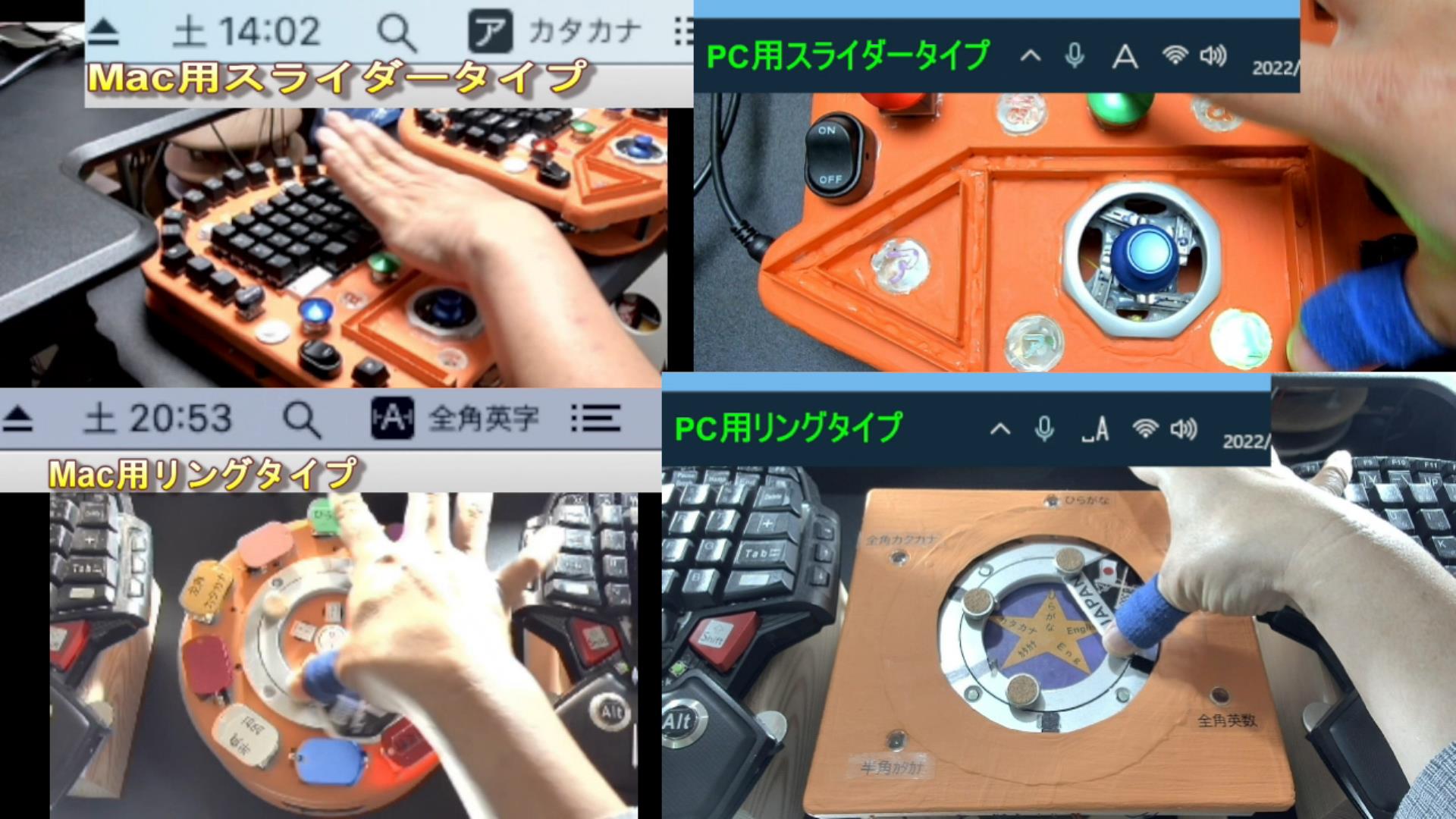 指1本で入力モードを自由に変更するために、Mac用とPC用それぞれについて「スライダータイプ」と「リングタイプ」の作品を作ってみました。