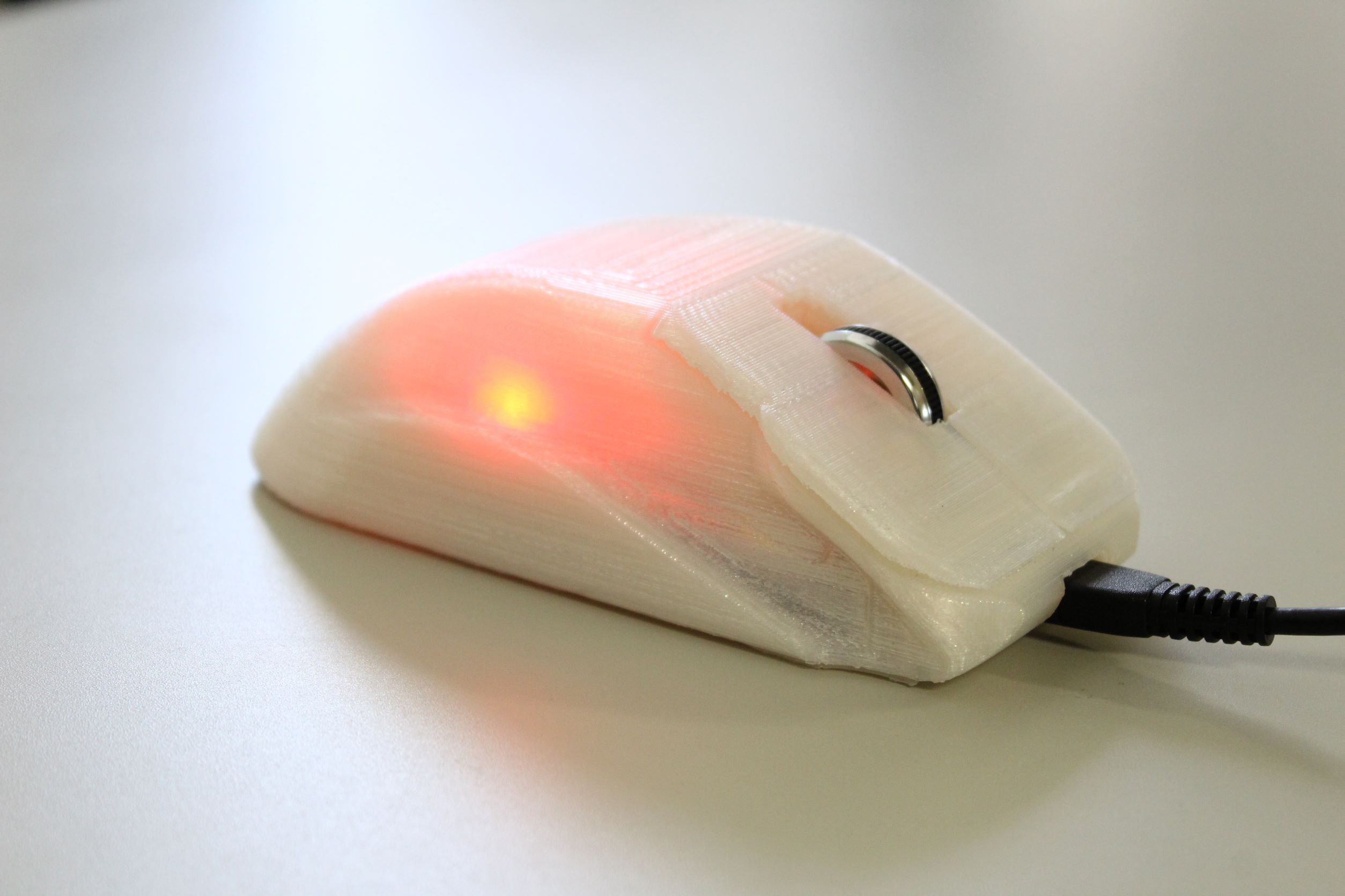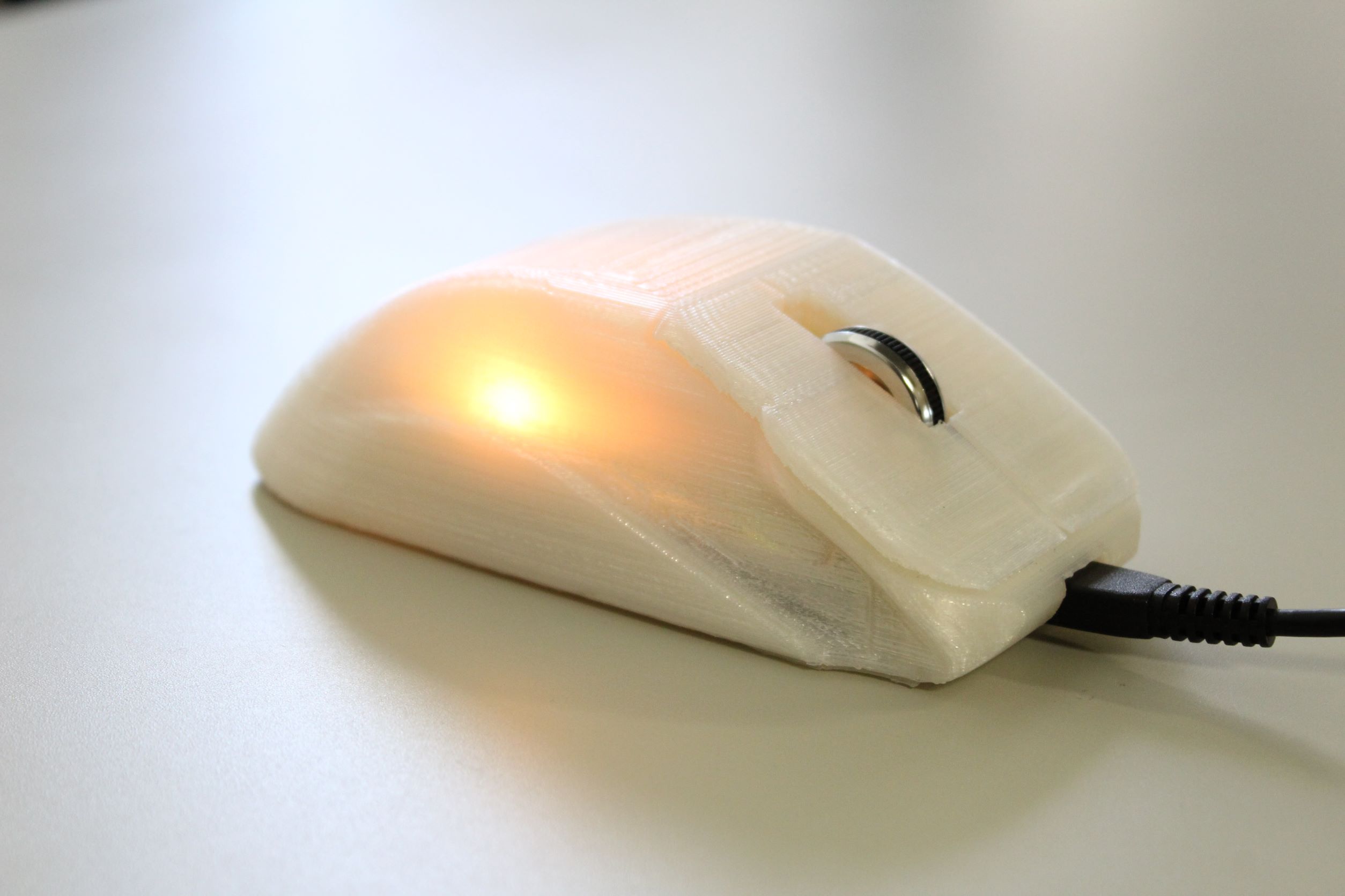 人が感じているストレスをセンシングし、光によって可視化する新感覚マウス「MouSense」。