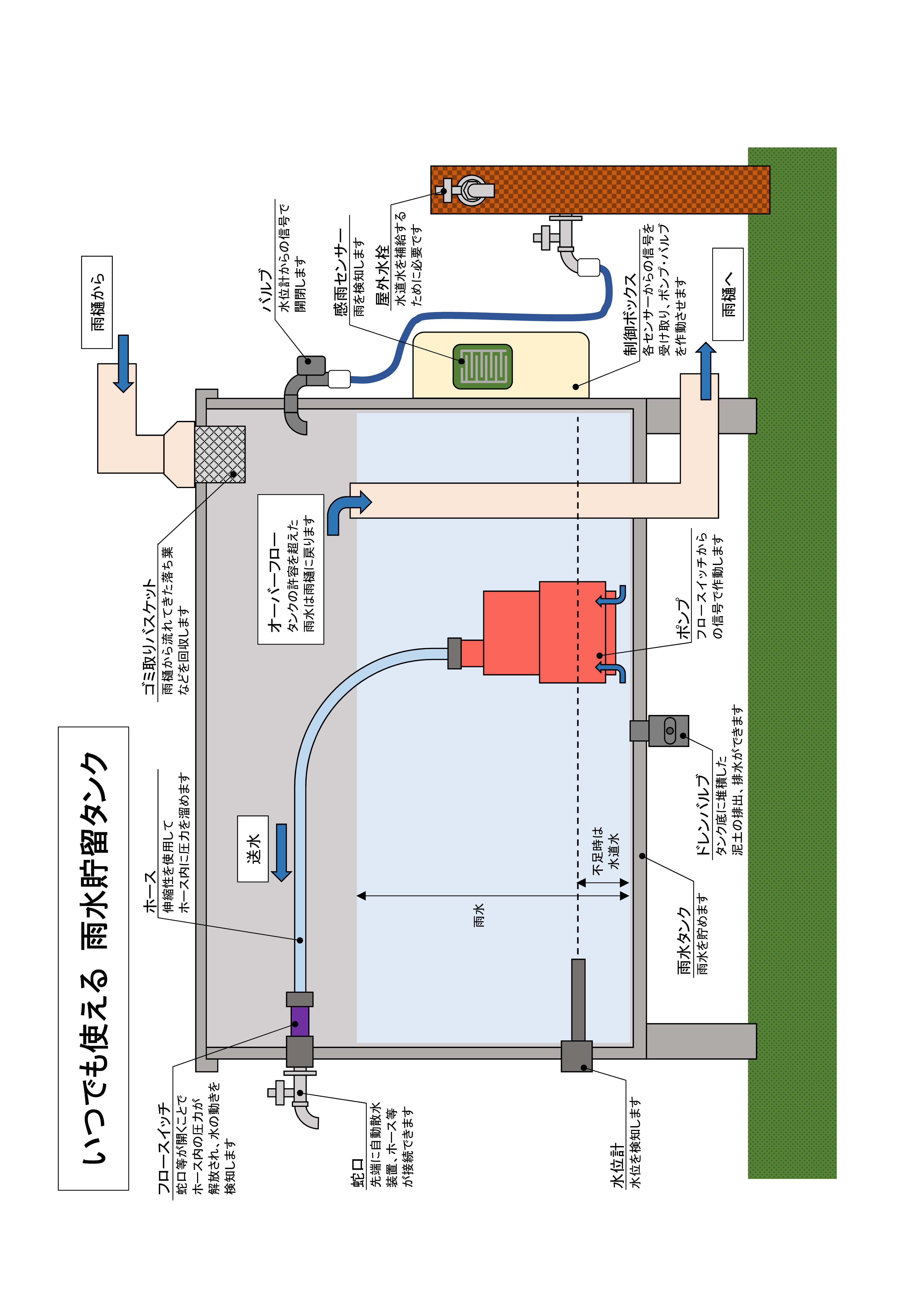 このままでは、雨水貯留タンクは不便となり、初めから屋外水栓にホースを接続して水道水を散水するほうが良いとなってしまいます。