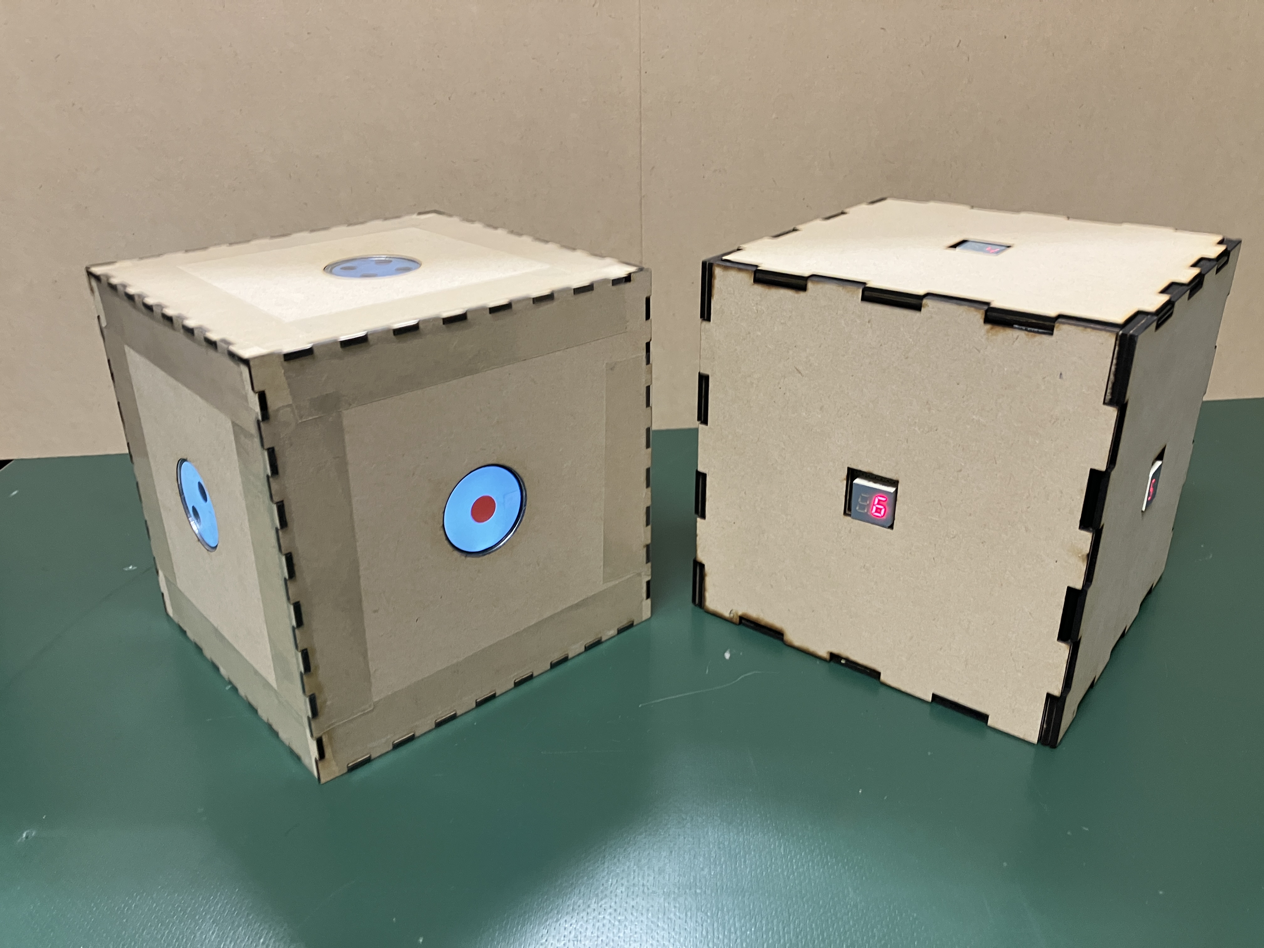 すごろくなどのサイコロを使ったゲームで、「この数字が出てほしい」と思ったり、相手に「この数字だけは出してほしくない」と思ったことはありませんか?そこで考えたのが、スマートフォンなどで遠隔に出る目を指定できるサイコロです。この作品は、スマートフォンのアプリから決められたコマンドをBluetooth経由で送信することによって、投げた時の上の面を指定した数字にすることができます。また、各面の表示にディスプレイを用いることによって、数字だけでなく、文や画像を表示させることができるサイコロも作成しました。罰ゲームの内容などを表示することで、イベントなどにも使用することができます。