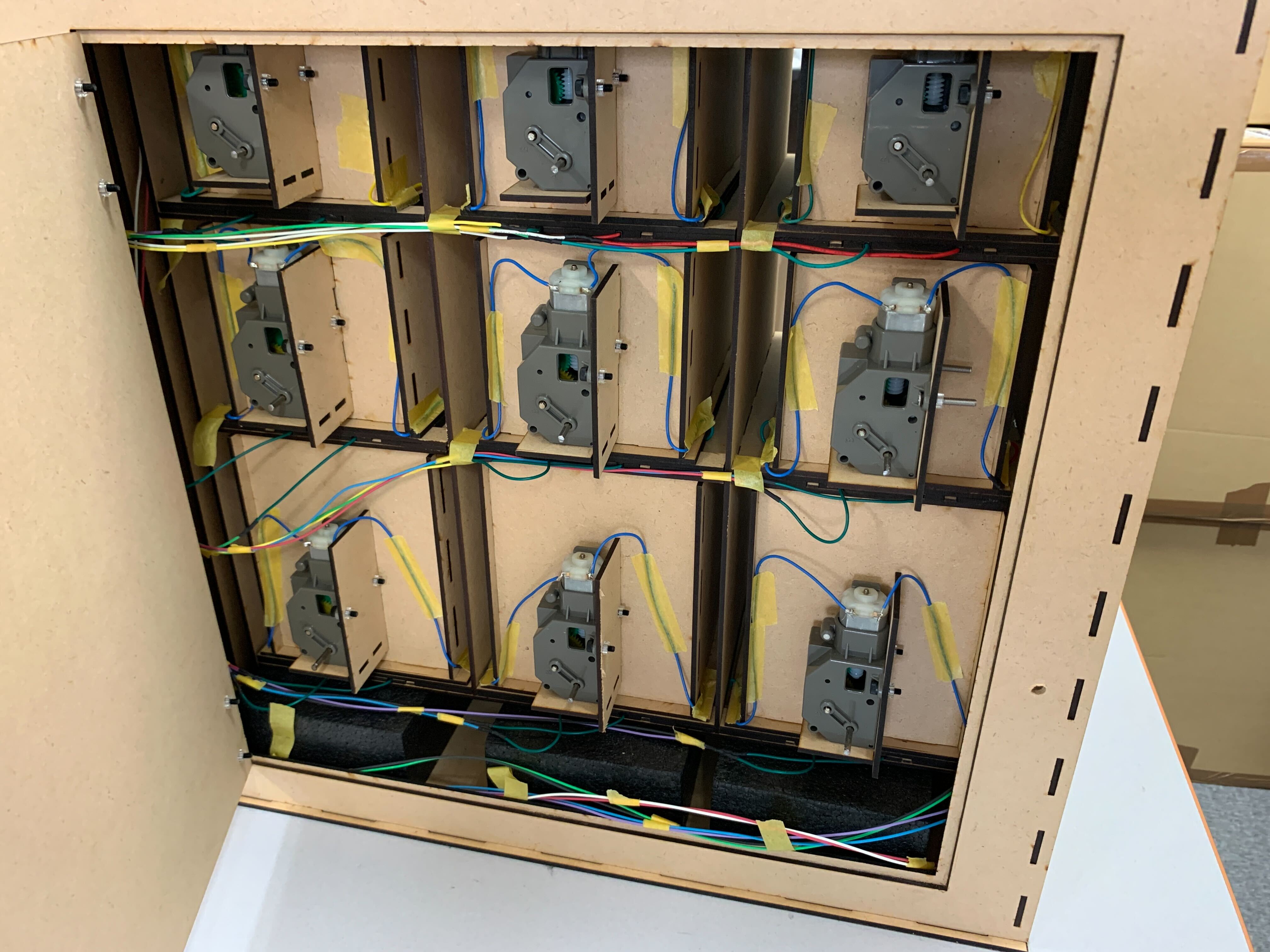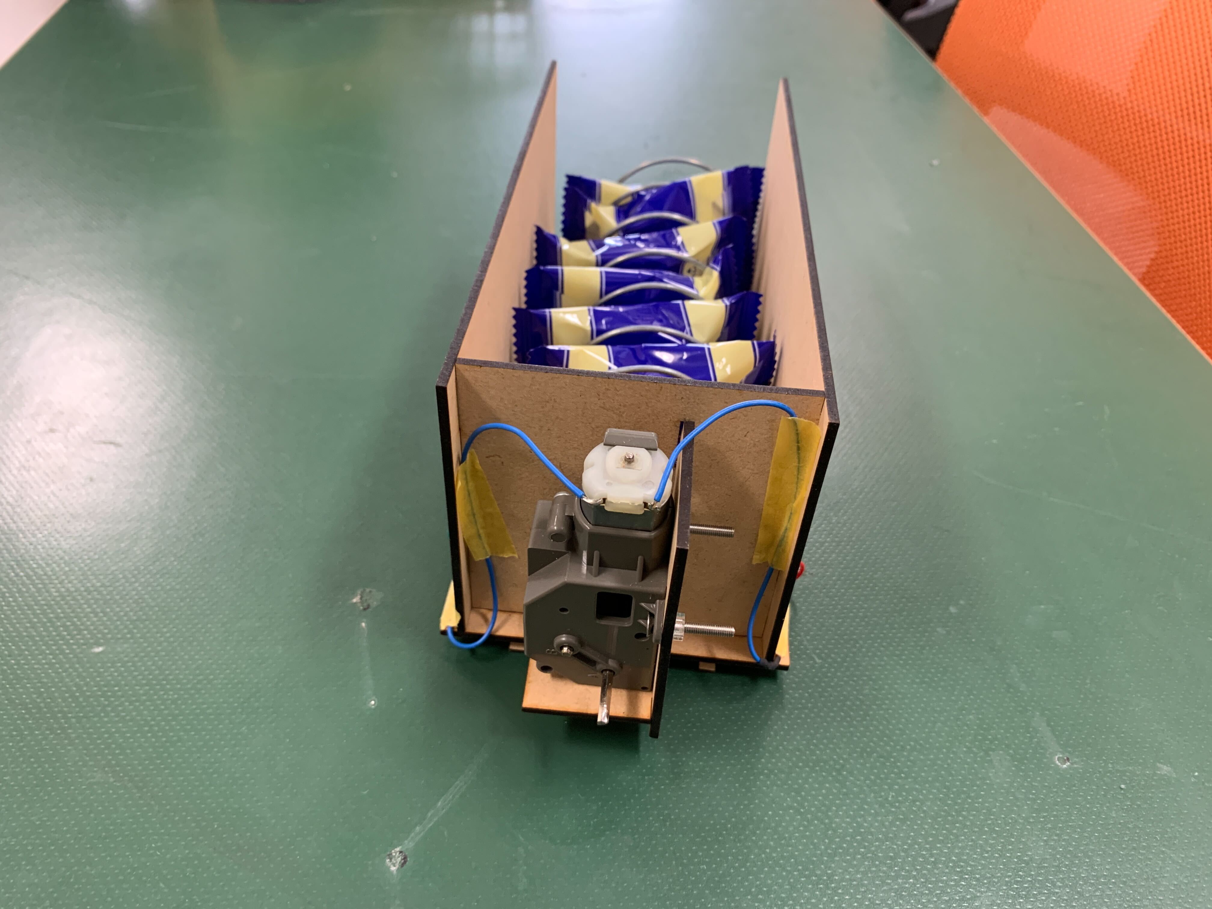 お菓子を入れる9つのモジュールは配線を気にすることなく出し入れを行うことができるため、商品の補充が簡単にできます。モジュールの大きさを調整することで様々なお菓子に対応させることも可能です。