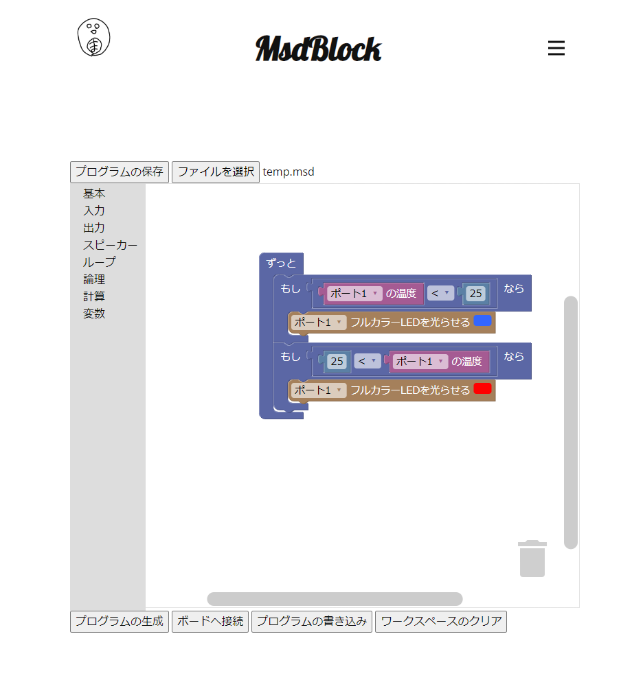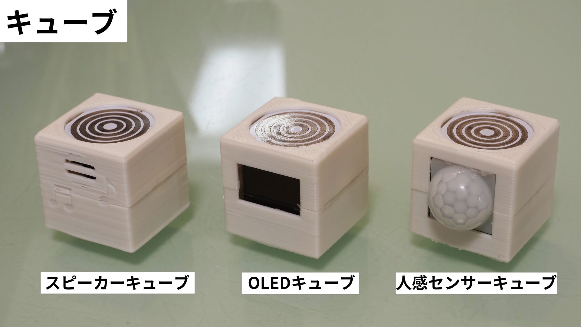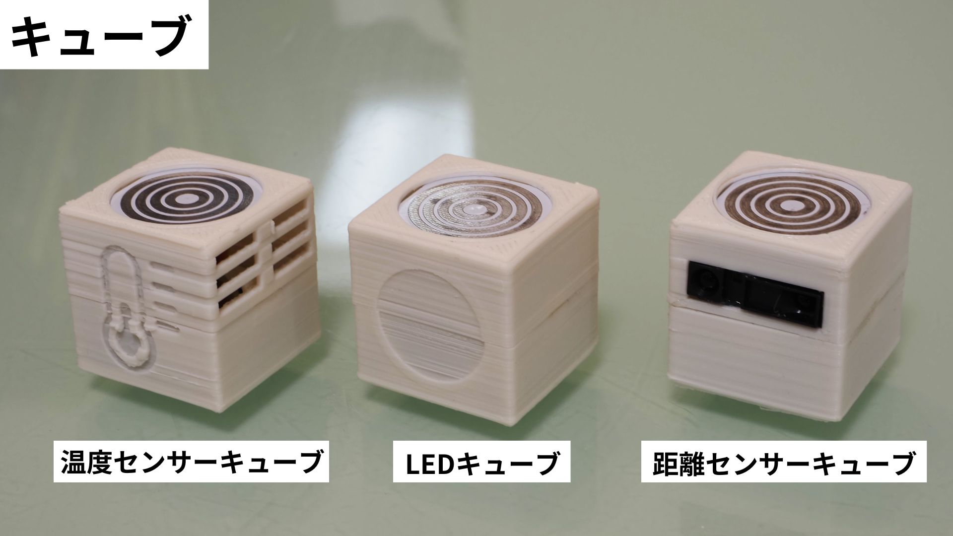 全体としてプログラムを作成するWebアプリケーション、プログラムを受信してキューブと通信を行う"ベース"、様々な電子部品(LEDやブザー、センサー等)を搭載した"キューブ"に分かれており、Webアプリケーションで作成したプログラムをベースに転送、ベースにキューブを置く(接続する) ことで作成したプログラム通りにキューブに内蔵された電子部品を動作させることができます。(詳しくは動画を御覧ください。)