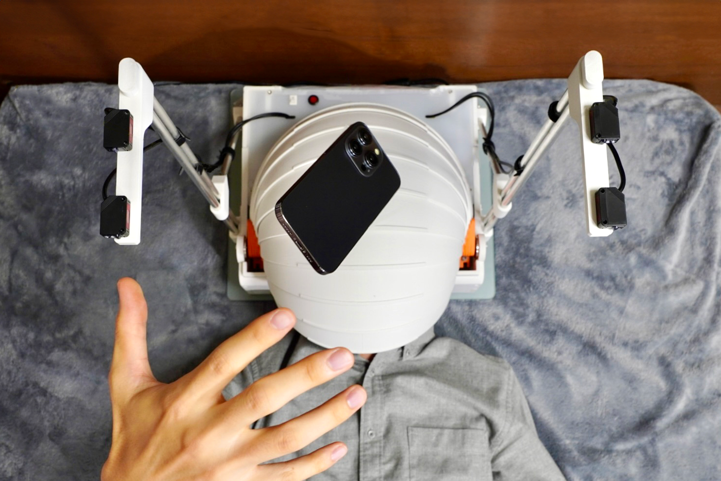 装置に頭をセットしたら、あとはスマホを落とすだけ。