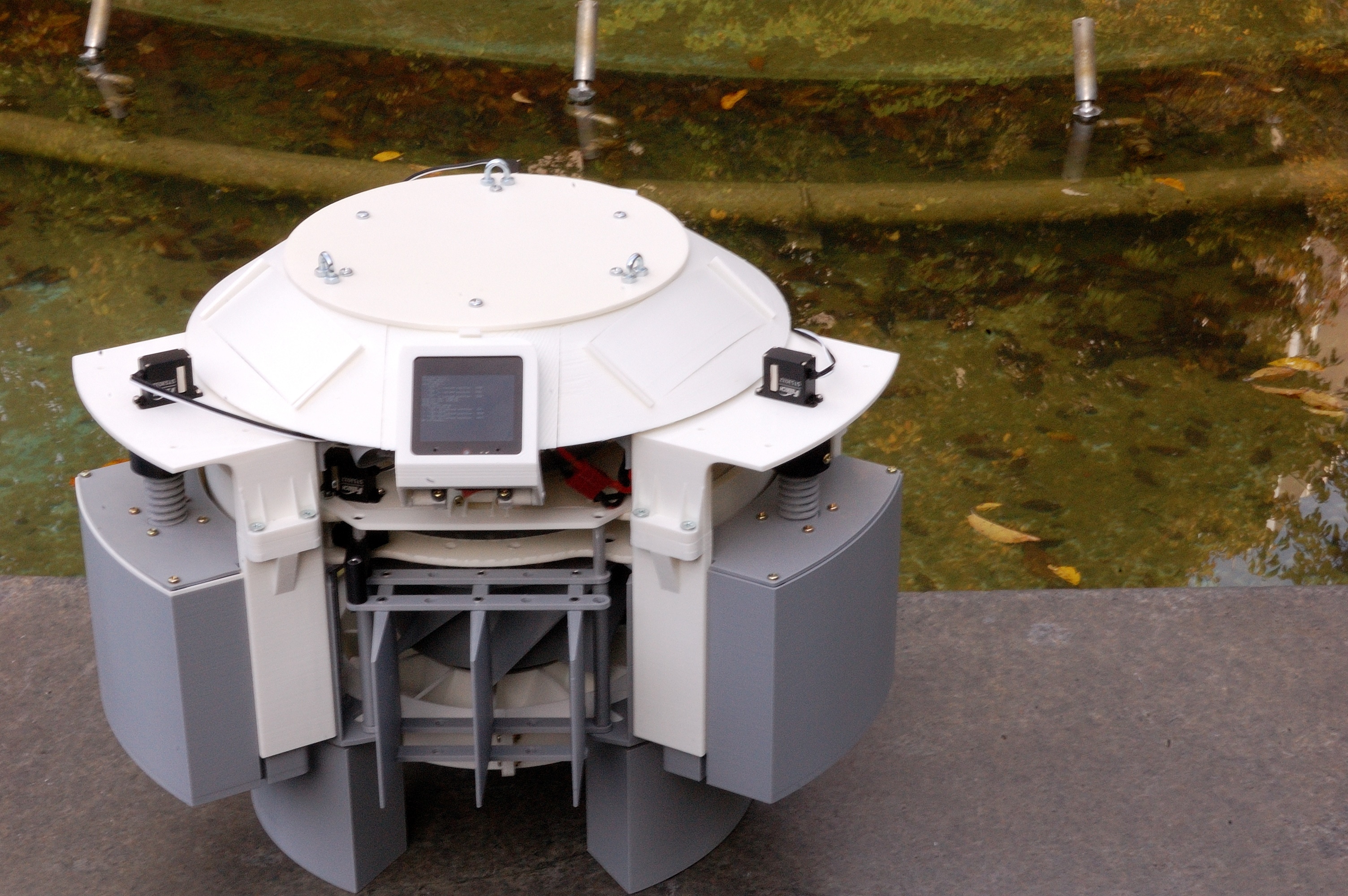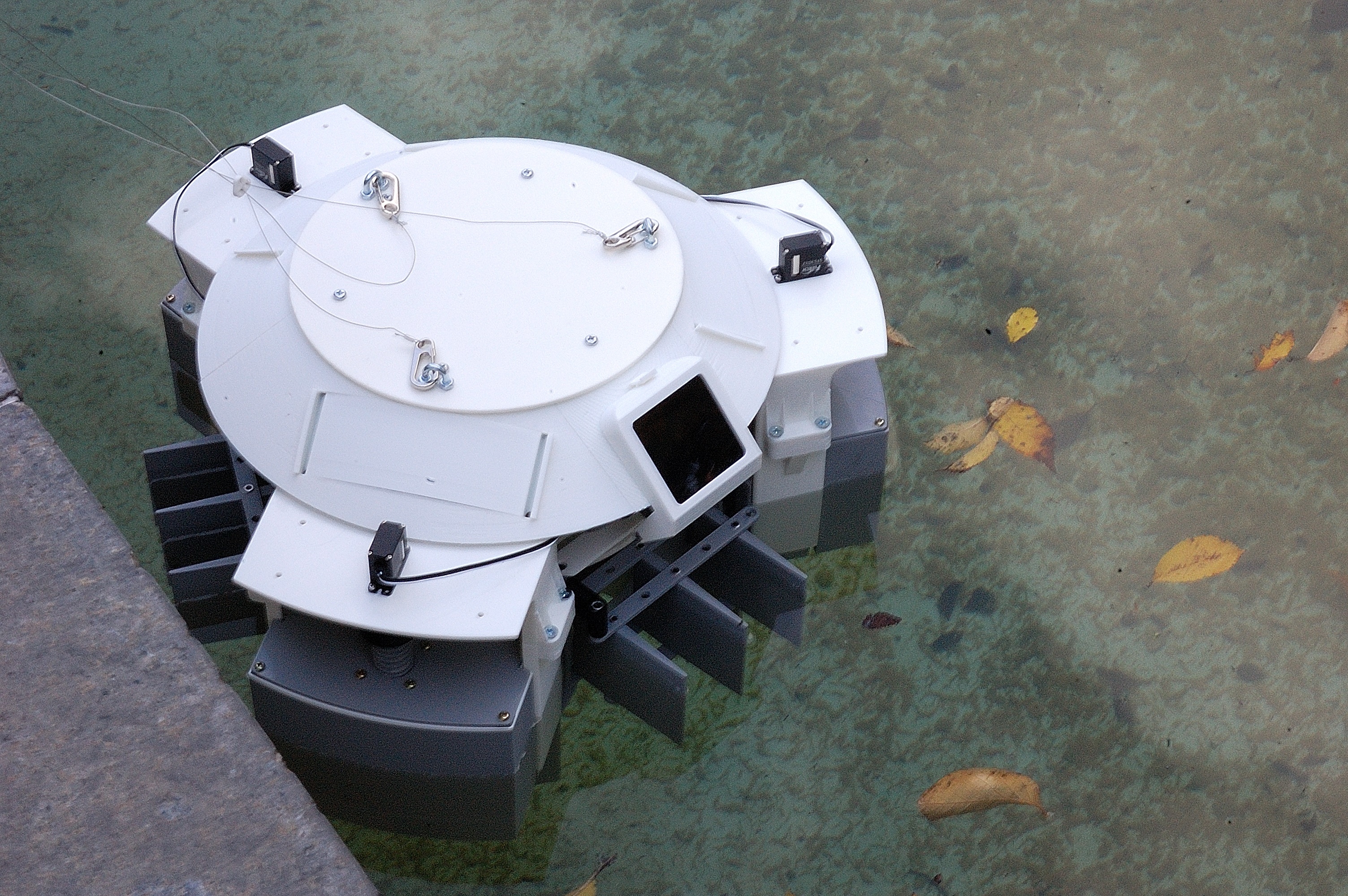 中央に組み込まれた羽根車により発生する外向きの水流を用いて全方位移動を可能とし、その場での旋回、向きを変えずに進行方向を変更するなどボートにはできない運動ができる「水上版ドローン」というコンセプトで製作したものです。これにより、入り組んだ場所での活躍が見込まれます。