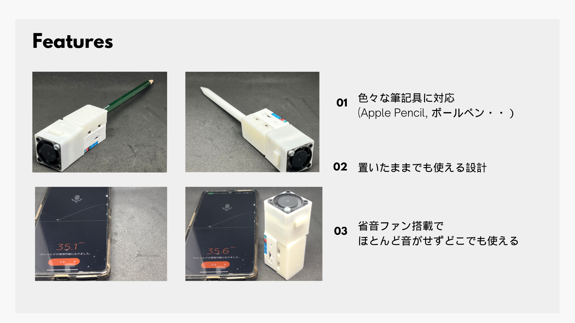 ・筆記していることを検知すると、電動ファンで香りを使用者にお届け