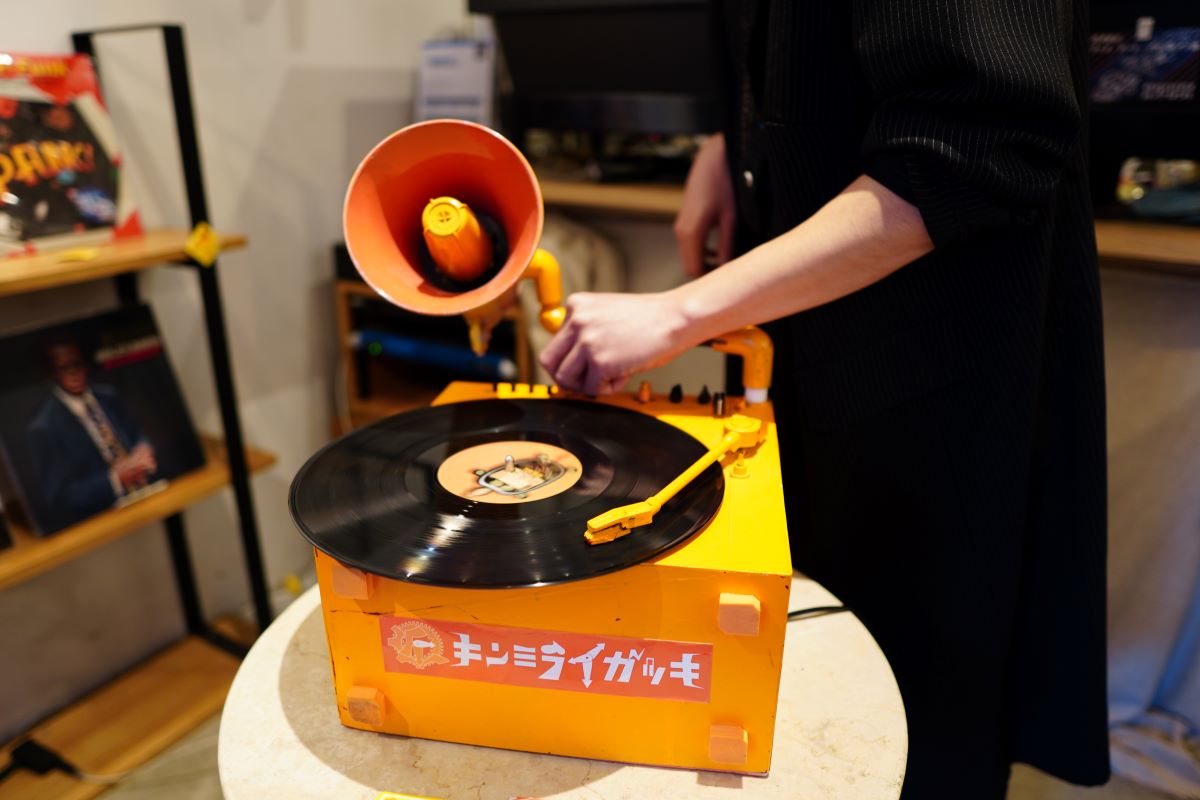 意外な組み合わせのように思われるかもしれませんが、人の声が聞き取りやすい中高帯域によったメガフォンの再生音には独特の味わいがあり、レコードに不思議とマッチします。