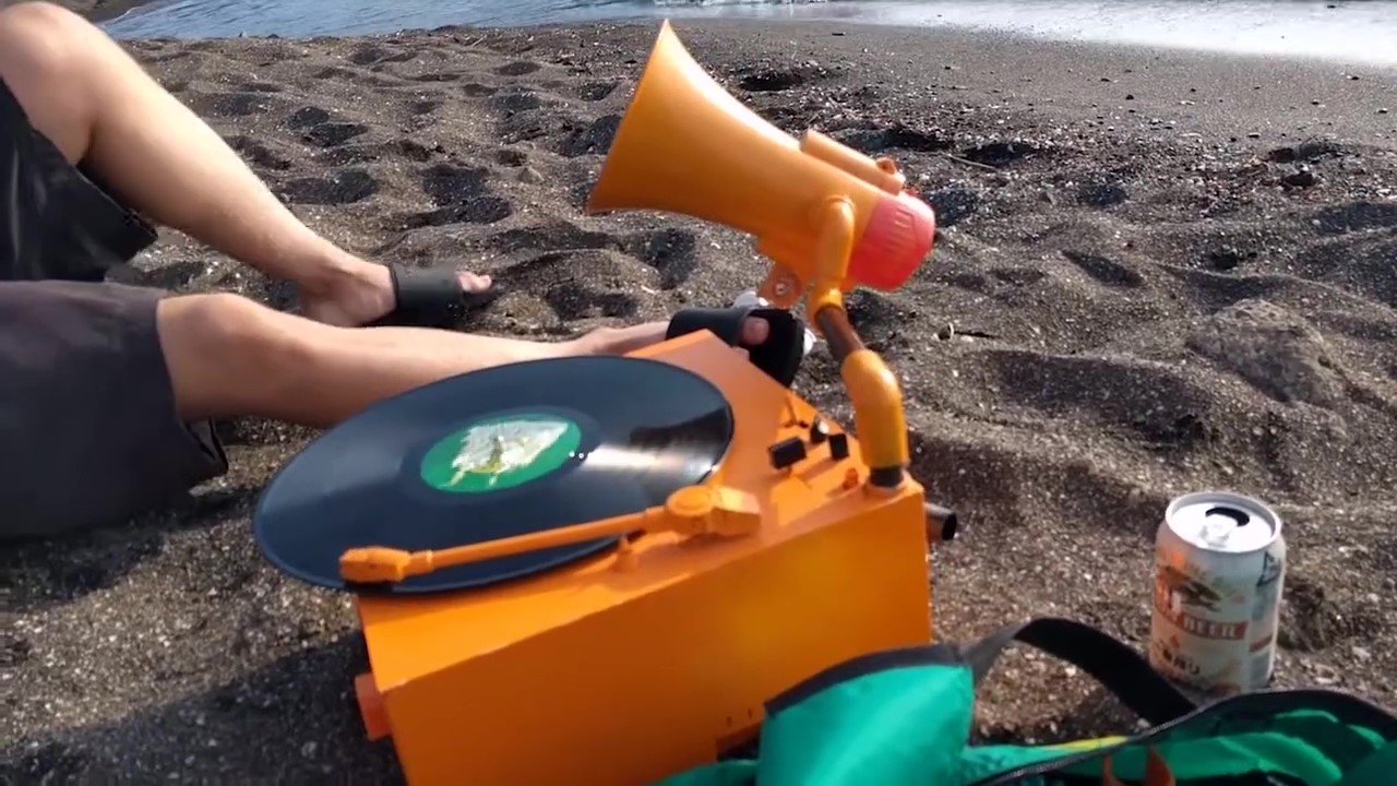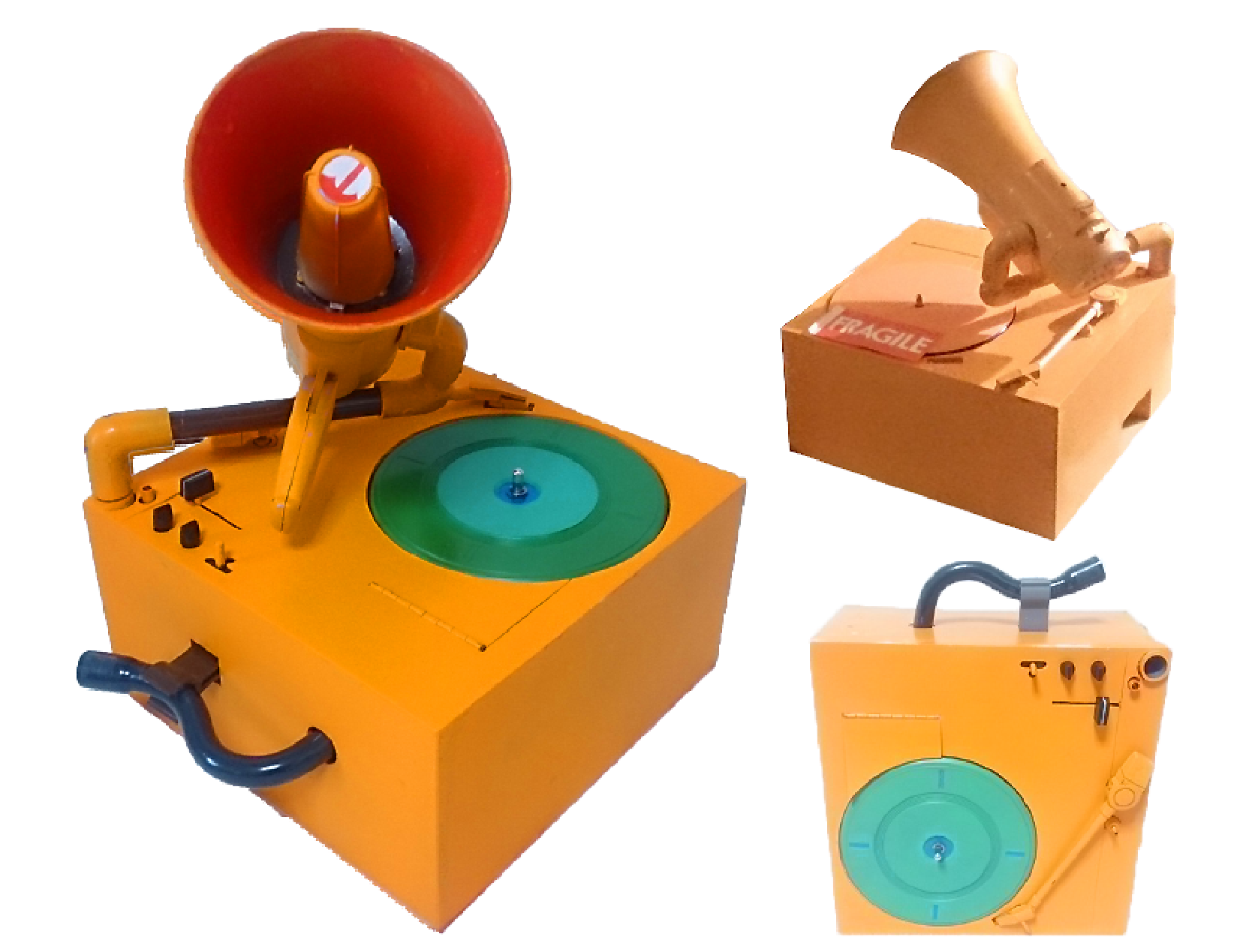 メガフォンを通して、レトロなサウンドから激しく歪んだ音まで、レコードの音を変化させて楽しむことが出来るネオ・ローファイなオーディオです。