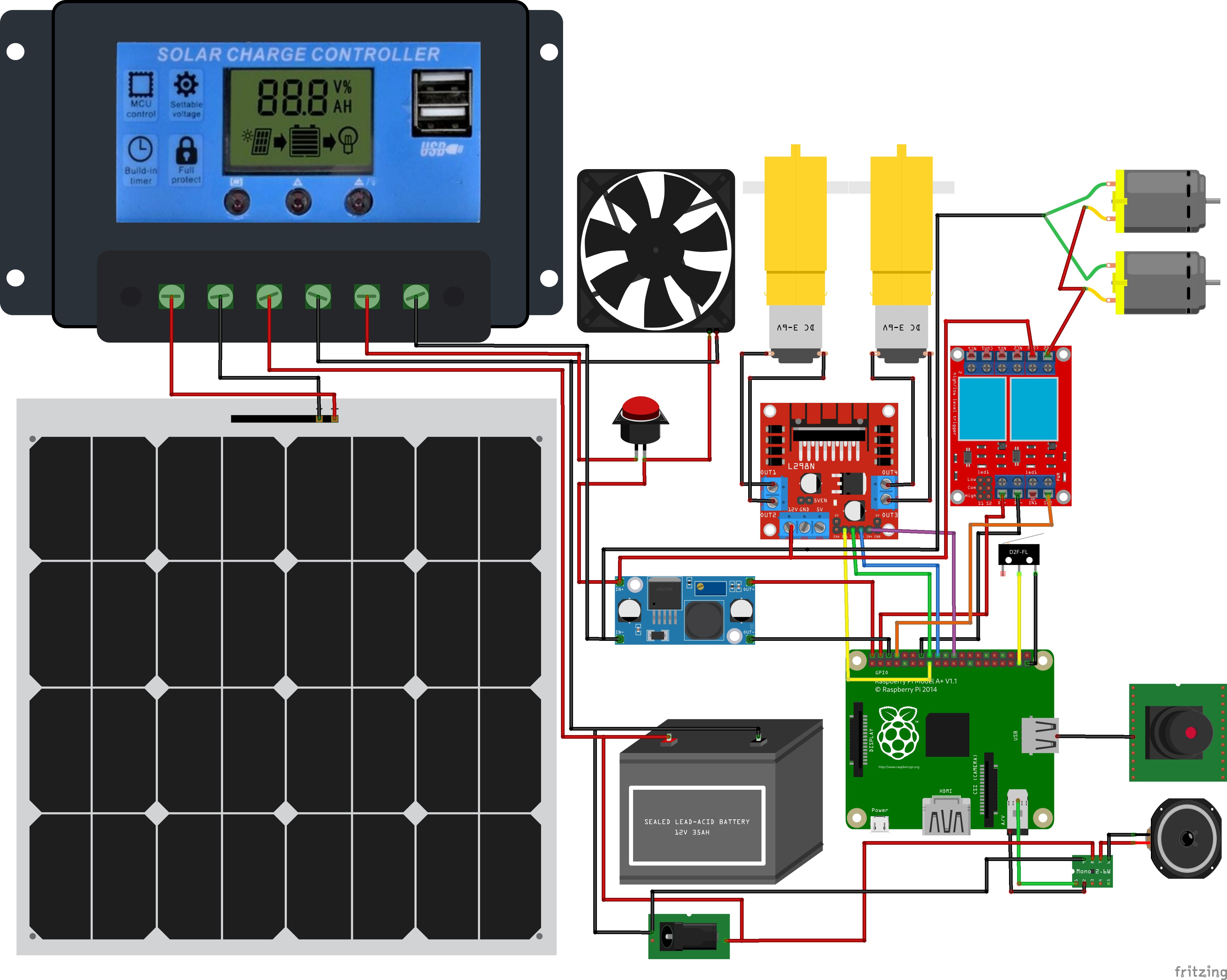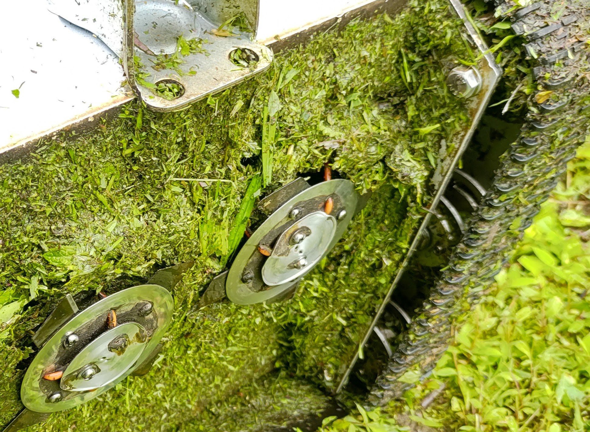 AC充電に加えて太陽光で充電することが出来ます。作業中にバッテリー電圧が降下したら、その場で留まり太陽光で充電します。バッテリー電圧が一定以上まで回復したら、自動で起動して、草刈りを再開します。晴天なら毎日10〜15分程自動で草刈りをし続けます。※AC充電の場合は、1回の充電で2〜3時間連続作業可。