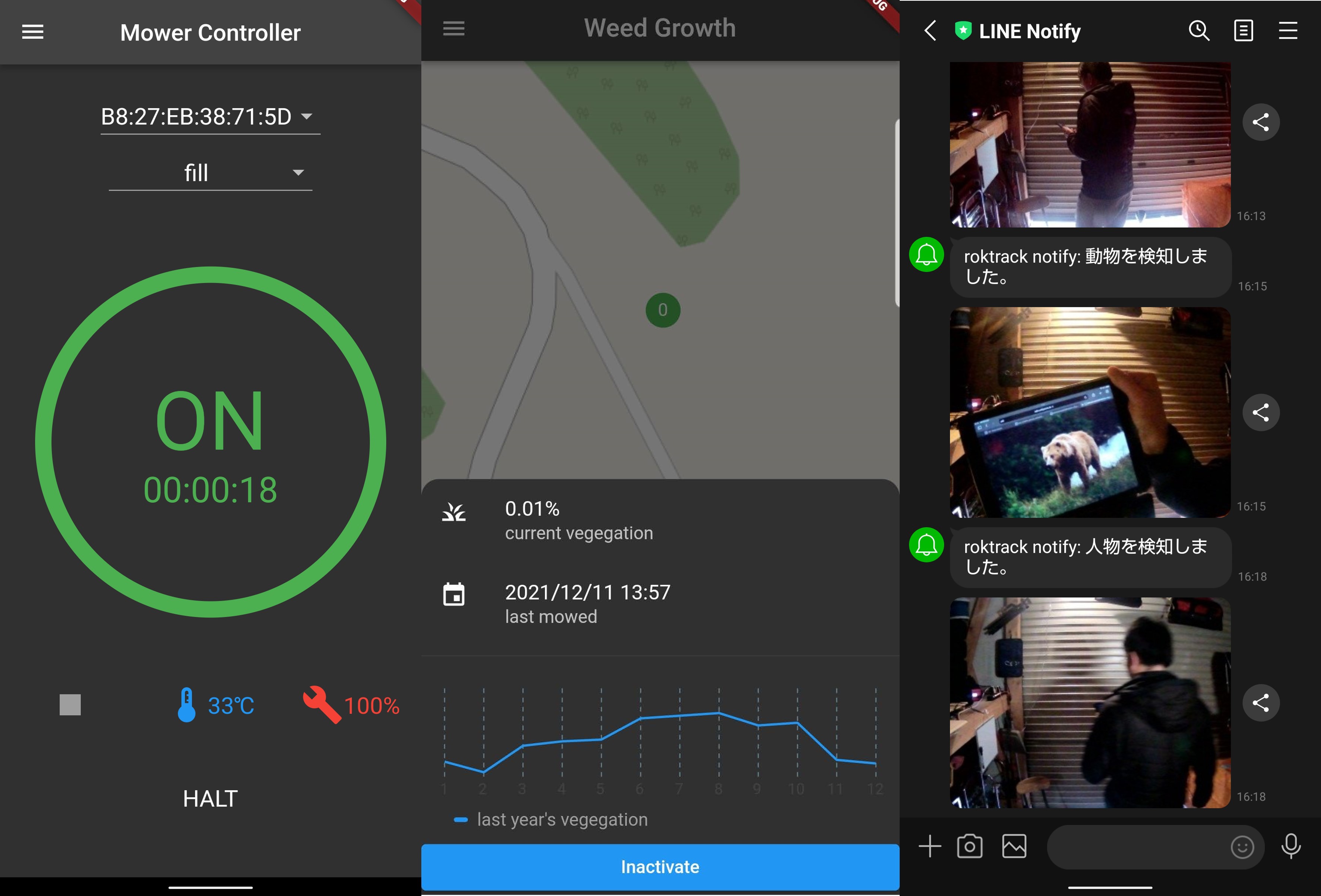 充電中に物体検出で人や害獣の出現を検知して、LINEに画像つきで通知。