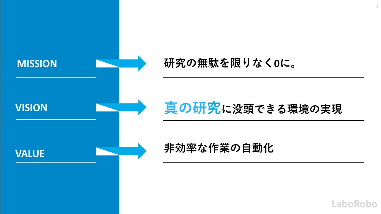 研究作業の効率化,コストの削減,人為的ミスの削減という新たな価値を提供します.研究者がやるべきは先行研究の調査やデータの考察,新しい価値の創造であり,それらにあてる時間が単純作業に奪われているのは大変な損失です.これらのムダ時間が削減されれば,より快適な研究環境が整うとともに,科学技術のさらなる発展にも貢献できると考えています.