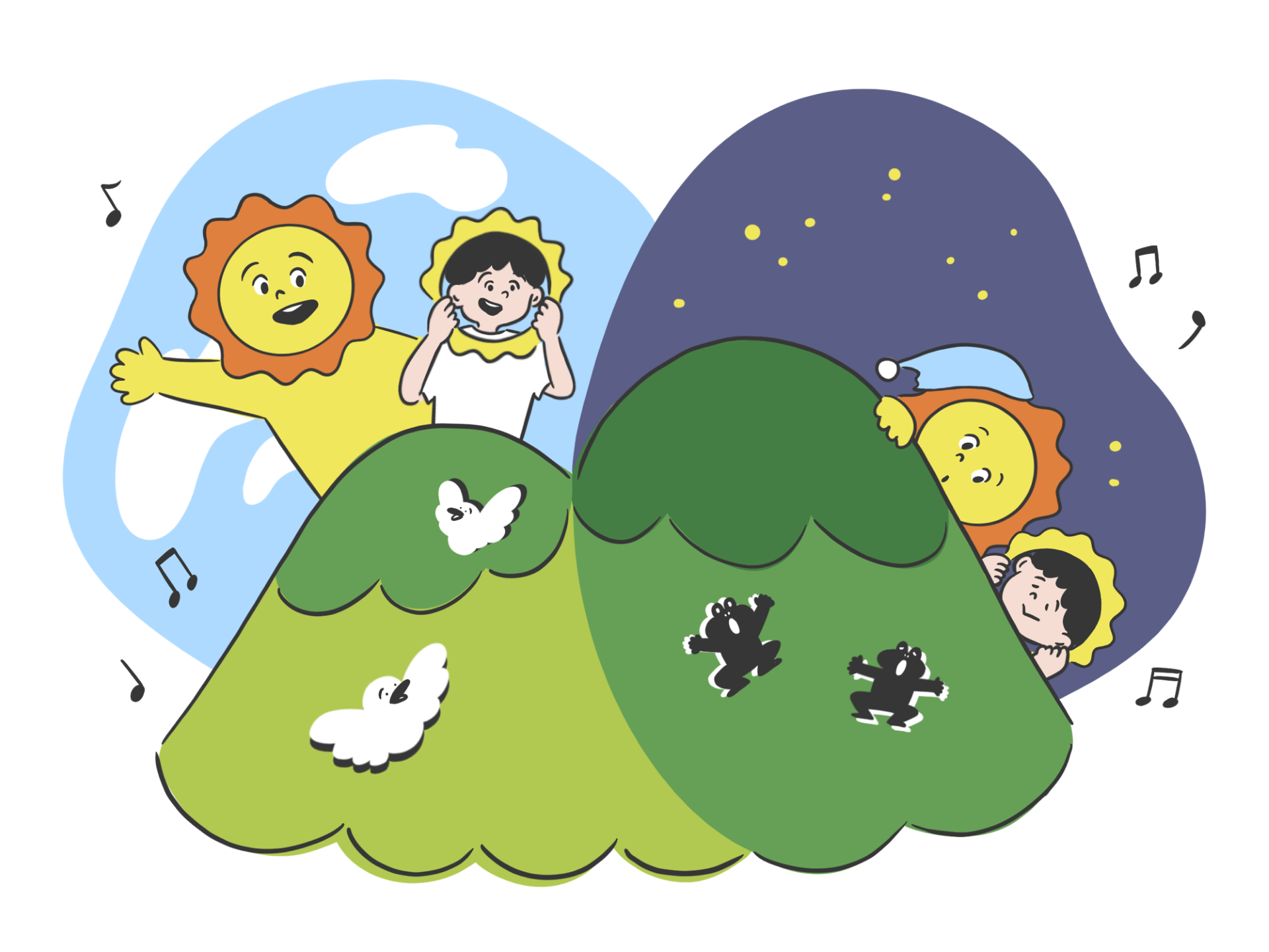 そこで、私たちJVCケンウッド・デザインが運営している森の音をライブ配信するサービス「Forest Notes」の音源を活用し、子供たちが自然に興味を持つ入り口として、太陽になりきって自然の音に耳を傾ける体験ができる「なってみ!たいよう」を制作しました。