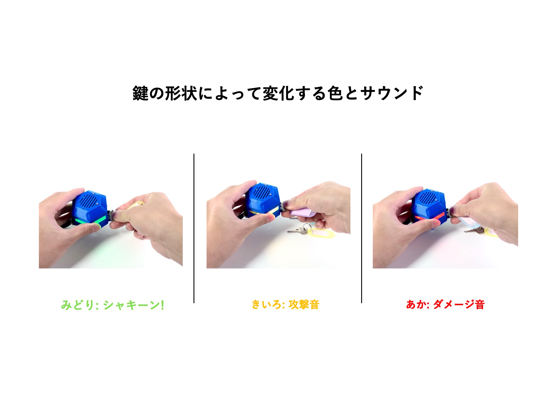 また、挿入した鍵の形状で異なる演出が起こるため、友達の鍵と比較して遊ぶこともできます。