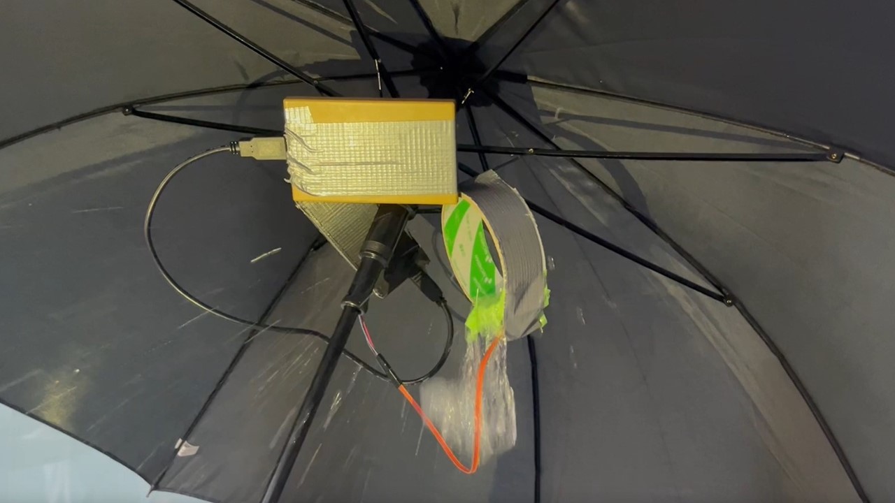 装置は大きく分けて「本体」と「水風船装置」で構成されています。鍵がロックされているとき、本体では加速度センサによって静止しているかどうかの判定が行われています。もし、静止していない状態であると判断した場合、本体のスピーカーからメッセージを再生し警告します。警告を一定時間無視した場合傘が盗まれたと判断し、水風船装置に取り付けた針で水風船を割ることで泥棒にお仕置きをします。