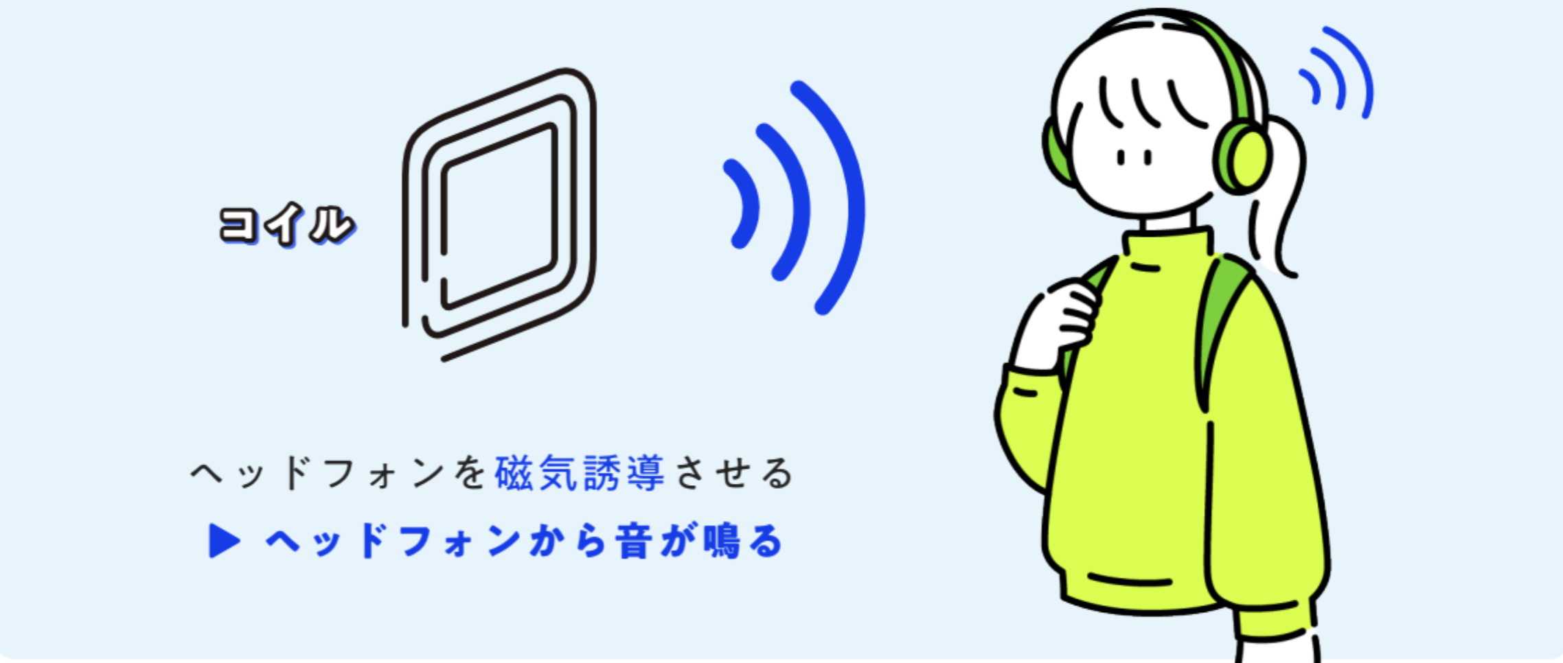 コイルによる磁気誘導を利用しているので、ノイズキャンセリングをオンにしていても、有線イヤホンでも無線イヤホンでも外から強制的に音を流すことができます。