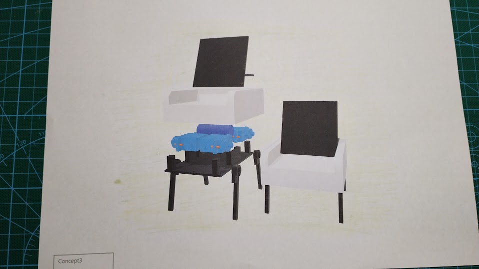 中野島ロボットが提供するのは、このイスの駆動部分のみで、足を除いて見えているのは全て外皮です。外皮の設計情報を公開するので、その地方の特産品(杉やヒノキ)を使って地元の企業に頼んで作ることができます。