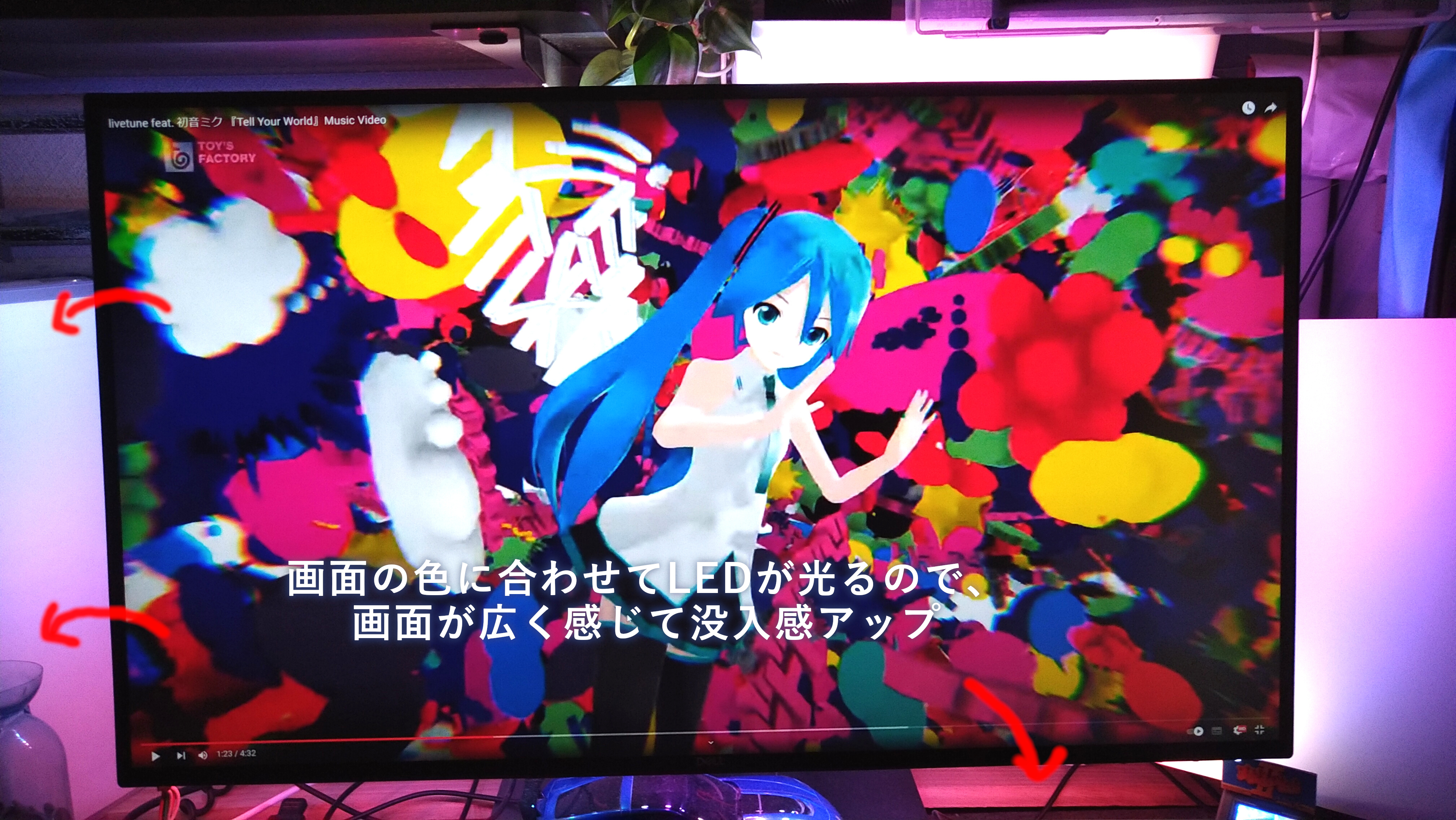 動画、ゲームを再生したときに、画像に合わせてディプレイの裏を光らせます。