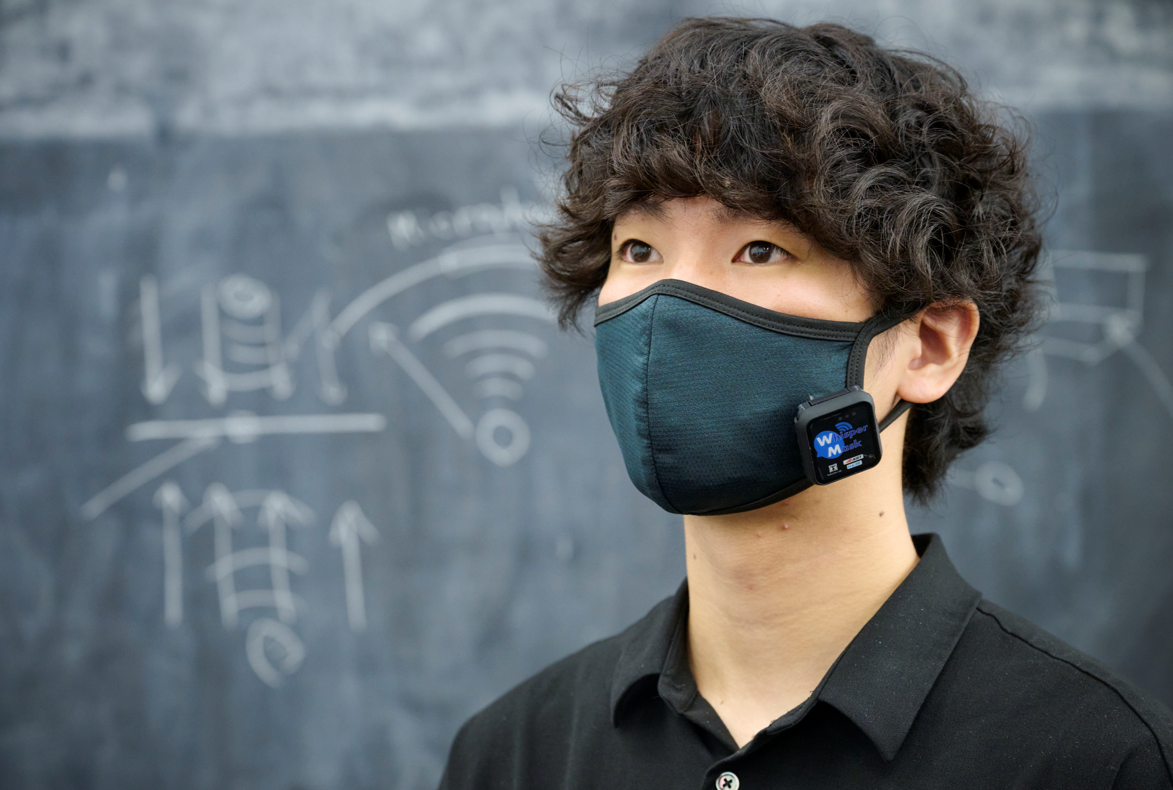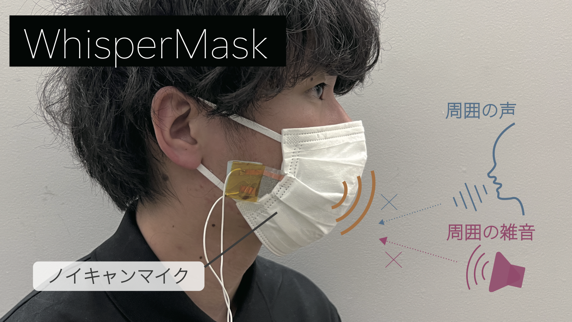 【概要】WhisperMaskは周囲がうるさい環境であっても、自分の声だけを拾えるノイズキャンセリングマイクです。
