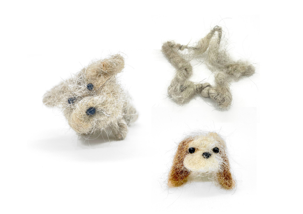 犬や猫といったペットは、多くの抜け毛を発生させますが、その大半は廃棄されています。カシミヤやウールと比較すると、ペットの毛は硬く、太く、柔軟性がないため、加工が難しく、再利用があまり進んでいない現状です。ペットを飼う家庭では、抜け毛の処理が負担となり、廃棄されるケースが多くあります。しかし、ペットの毛を誰にとっても加工しやすい形にし、身近に感じられるアイテムにできれば、廃棄を減らし、飼い主にとって特別な思い出になると考えました。