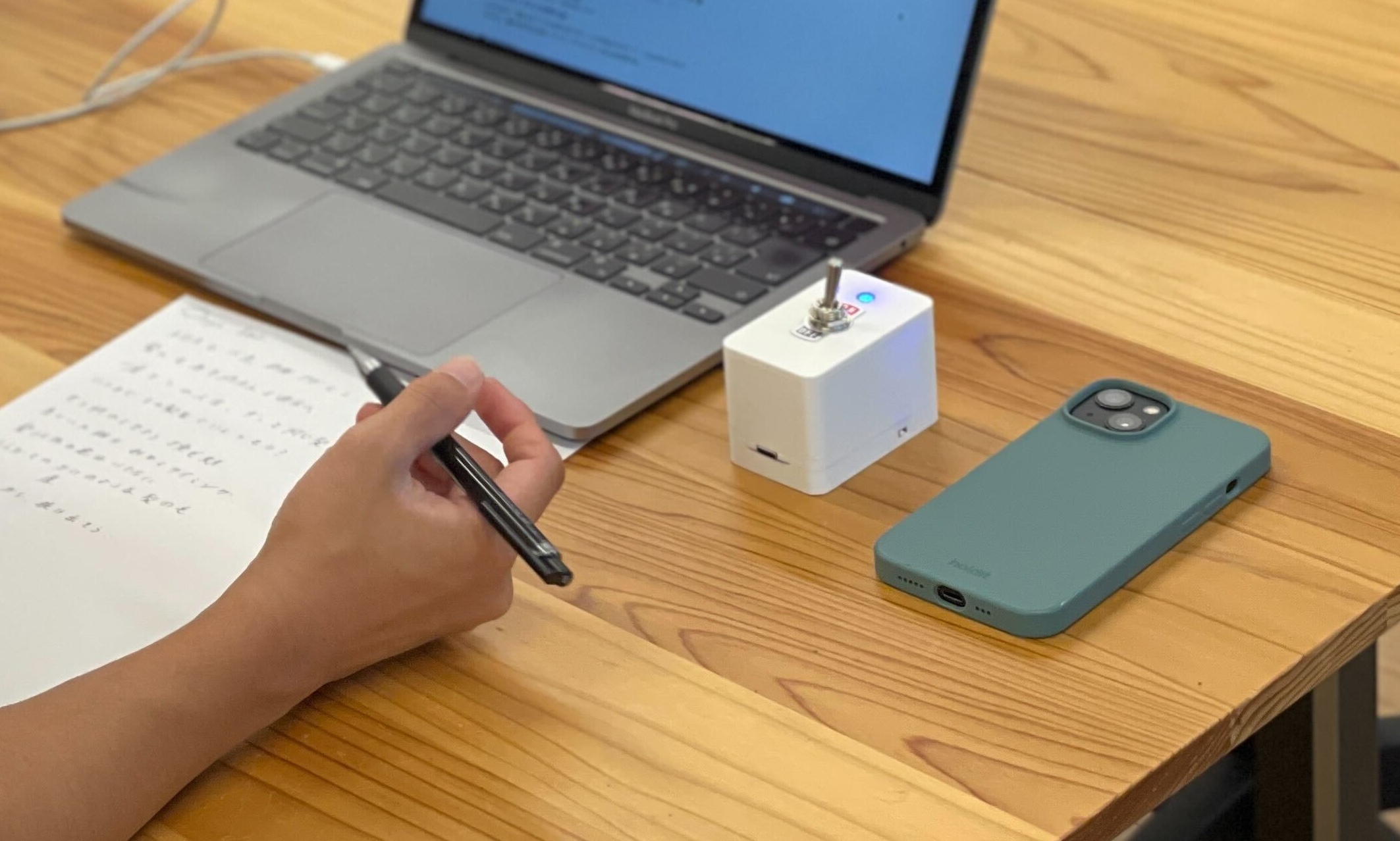 「他人の目に見えるような状態」「自分の身体的な操作によってON/OFFを切り替える」といったデバイスの物質的な特性によって、より自身の内省に寄与するためのデザインとなっている。