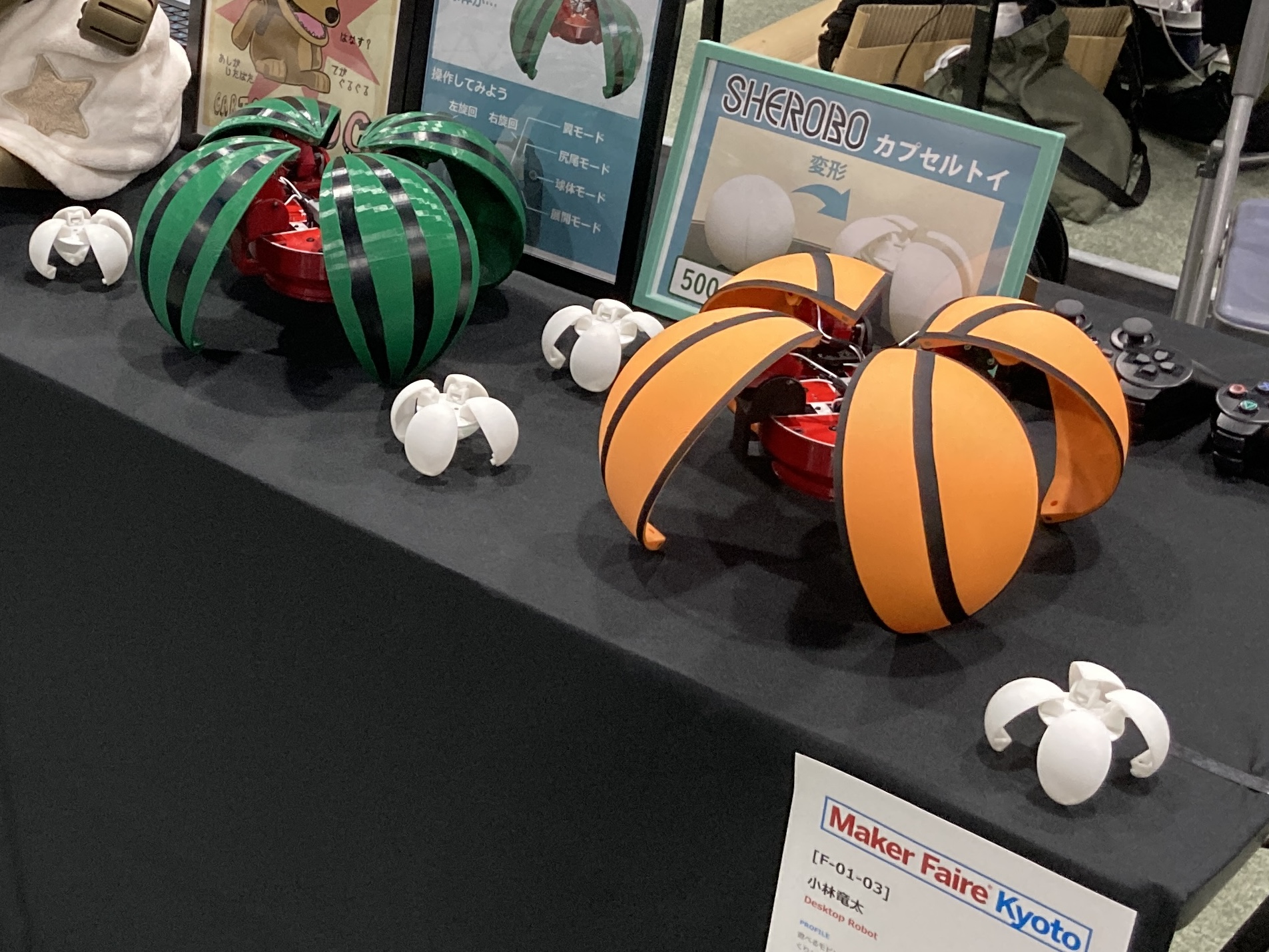球体に変形する12軸の多脚ロボット。Bluetoothコントローラで自由に操作可能。外殻のデザインを変更することで、フルーツなど様々な球体を模することができる。小型版はカプセルトイとしての配布も可能。