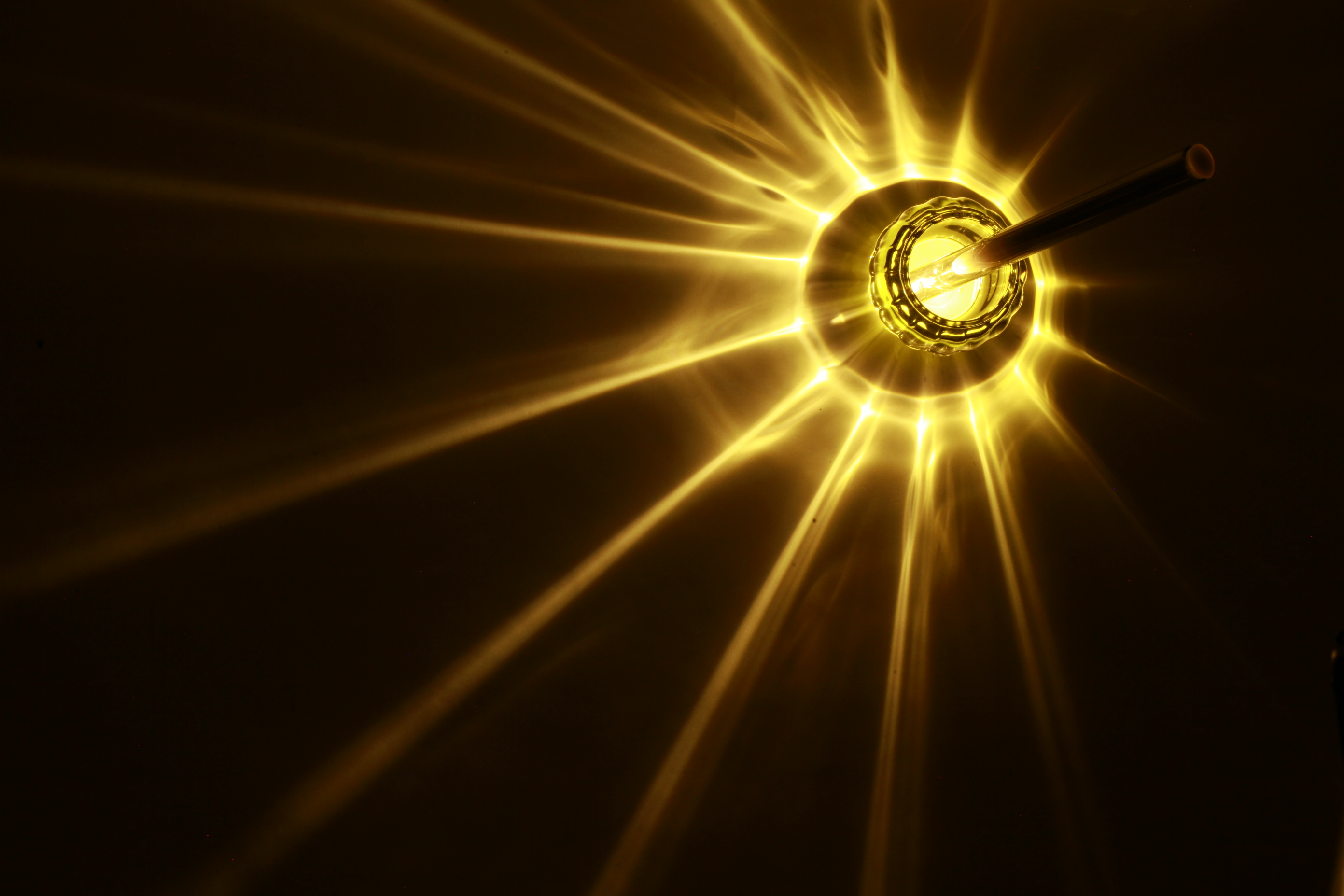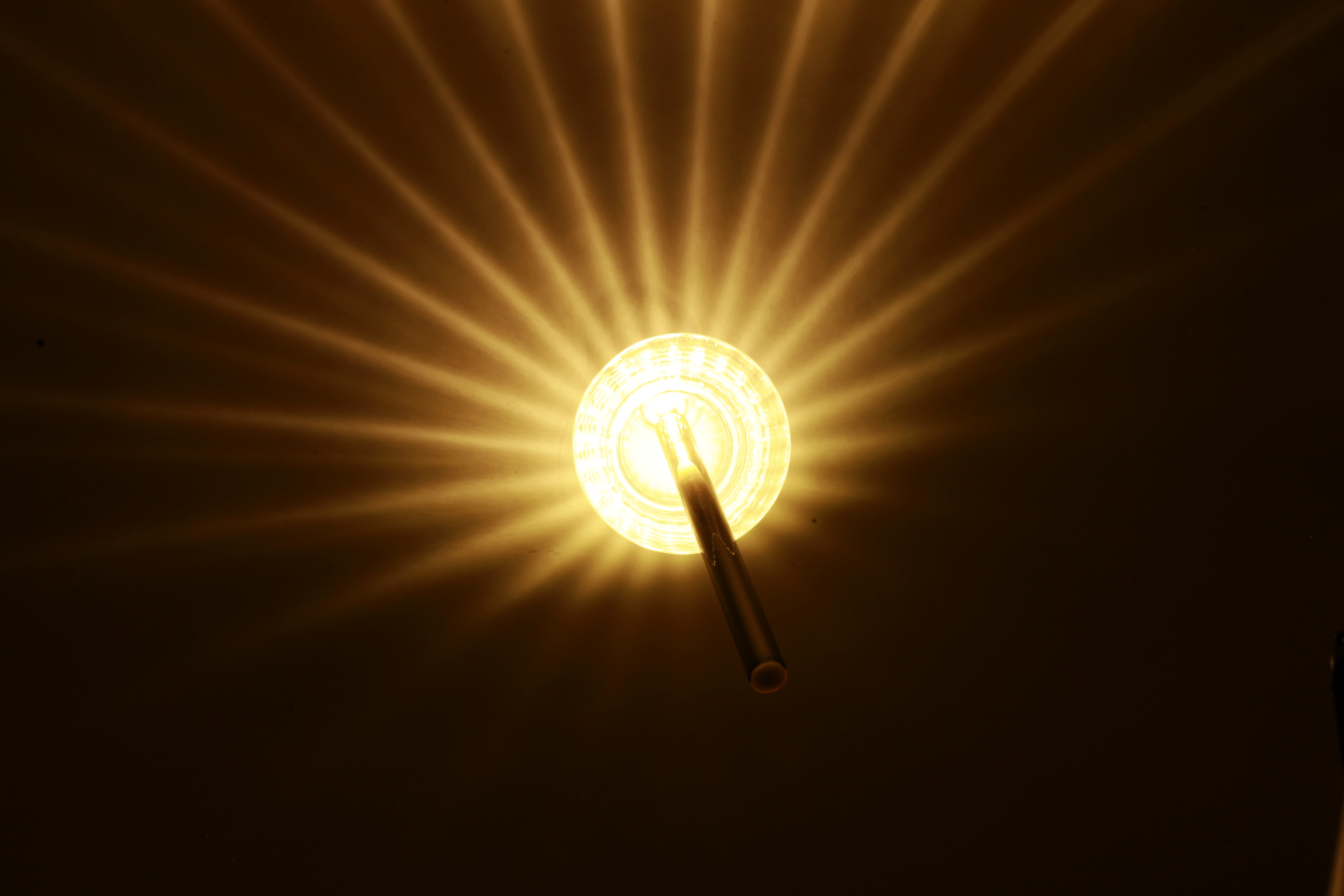 Kvel本体はシルバーのスティック。お好きなグラスに入れるだけで、キャンドルとして楽しめます。内側から点光源で照らすことによって、グラスごとに異なる神秘的な模様を映し出します。