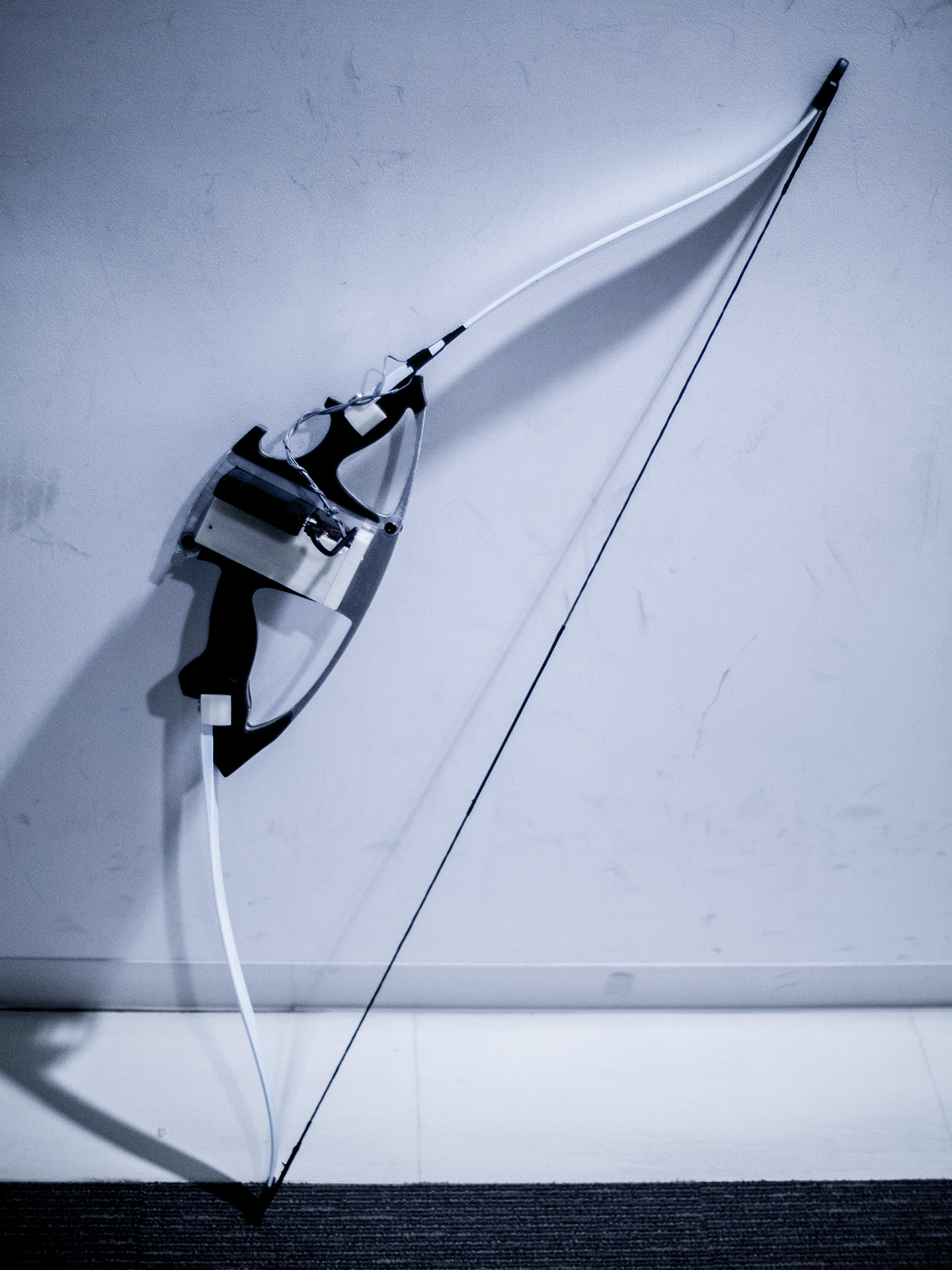 この弓を手にした時の感触、持った重さ、握り心地、撃った時の感触など、実際に触らないと映像ではなかなか伝わりにくいので、是非手にとって体験してほしい作品です。