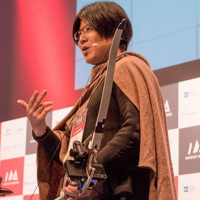 参式電子弓は、本物のアーチェリーに各種センサ、マイコン、小型PC、モバイルレーザープロジェクタ、バッテリーなどを搭載したARゲームシステム。本物の弓を扱うように弦を引いて360度全方向に対して仮想的な矢を撃つことが可能。