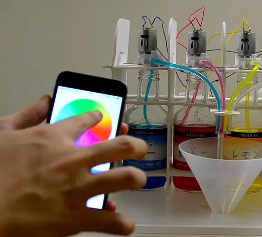 おなじみのあの市販シロップを使い、どんな色のかき氷も楽しめるようにしました。デジタル制御でCMYKにあたる4色をミックスし、美しく染まってゆきます。 子供たちにとっては、どんな色も生み出せる3原色との出逢いになるかもしれません。
